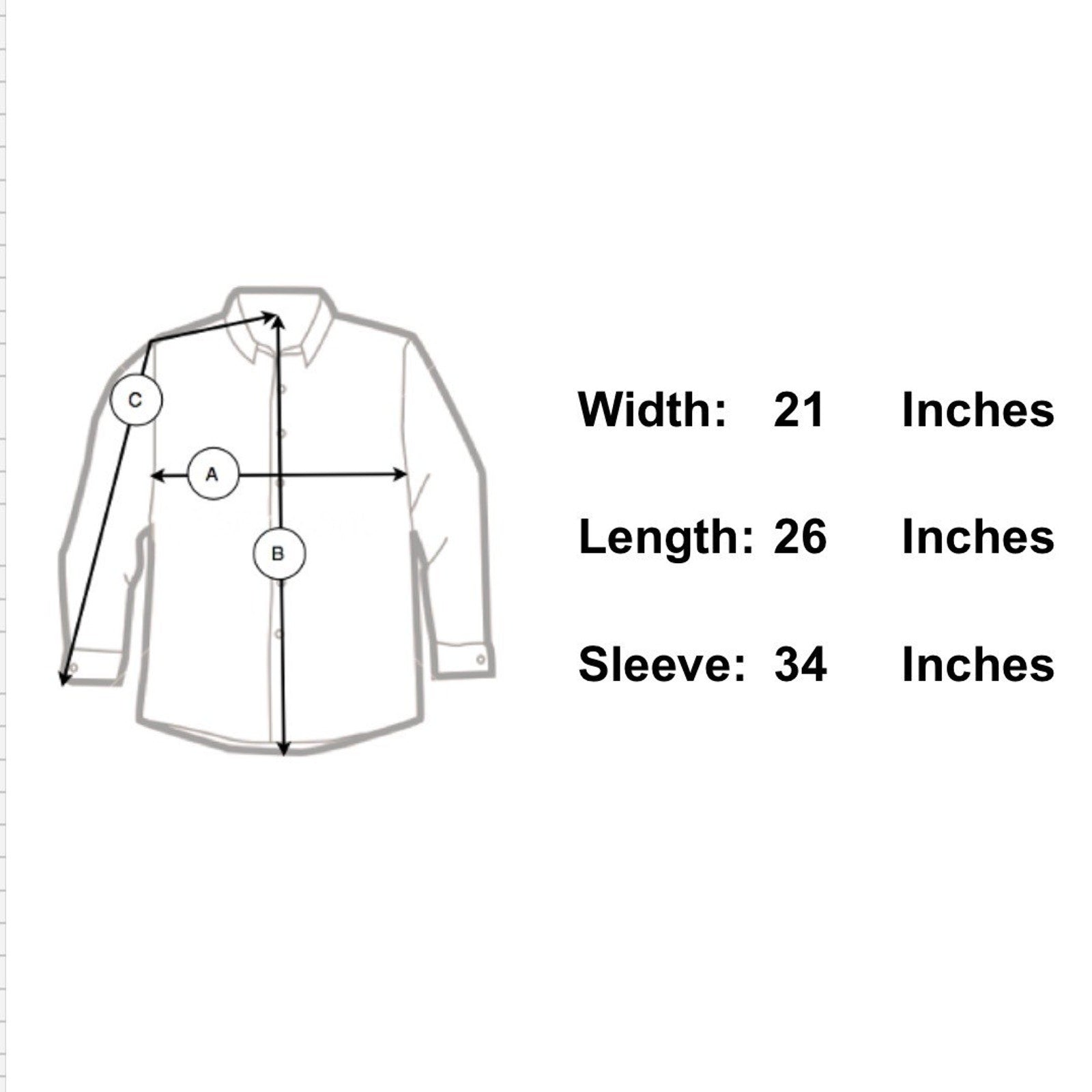 Sleeve Length 34" - From the center of the back of the neck to the shoulder to the bottom of the sleeve