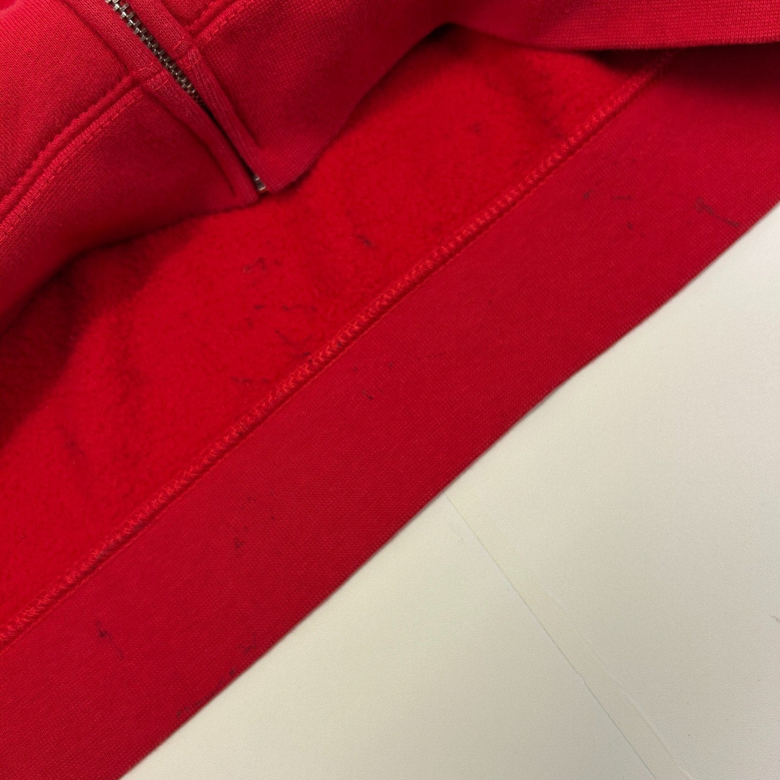 Has staining on the inside bottom band, a couple faint spots, and some wear on the drawstring. No other flaws noticed. See photos.