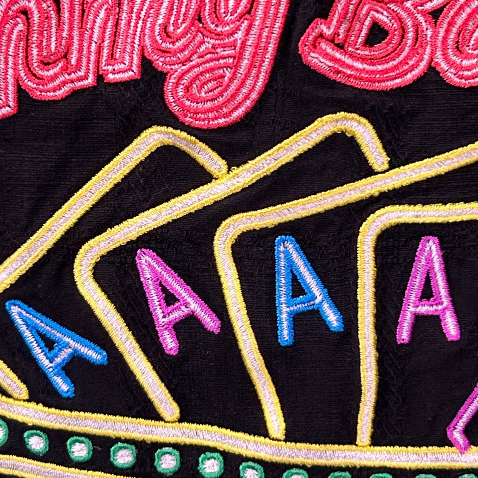 Tommy Bahama It's a Las Vegas State of Mind Hawaiian Camp Shirt Casino Gambling Gambler Dollar Signs Money Embroidered Silk Pocket Short Sleeve Button Up Button Down Black 3XLB