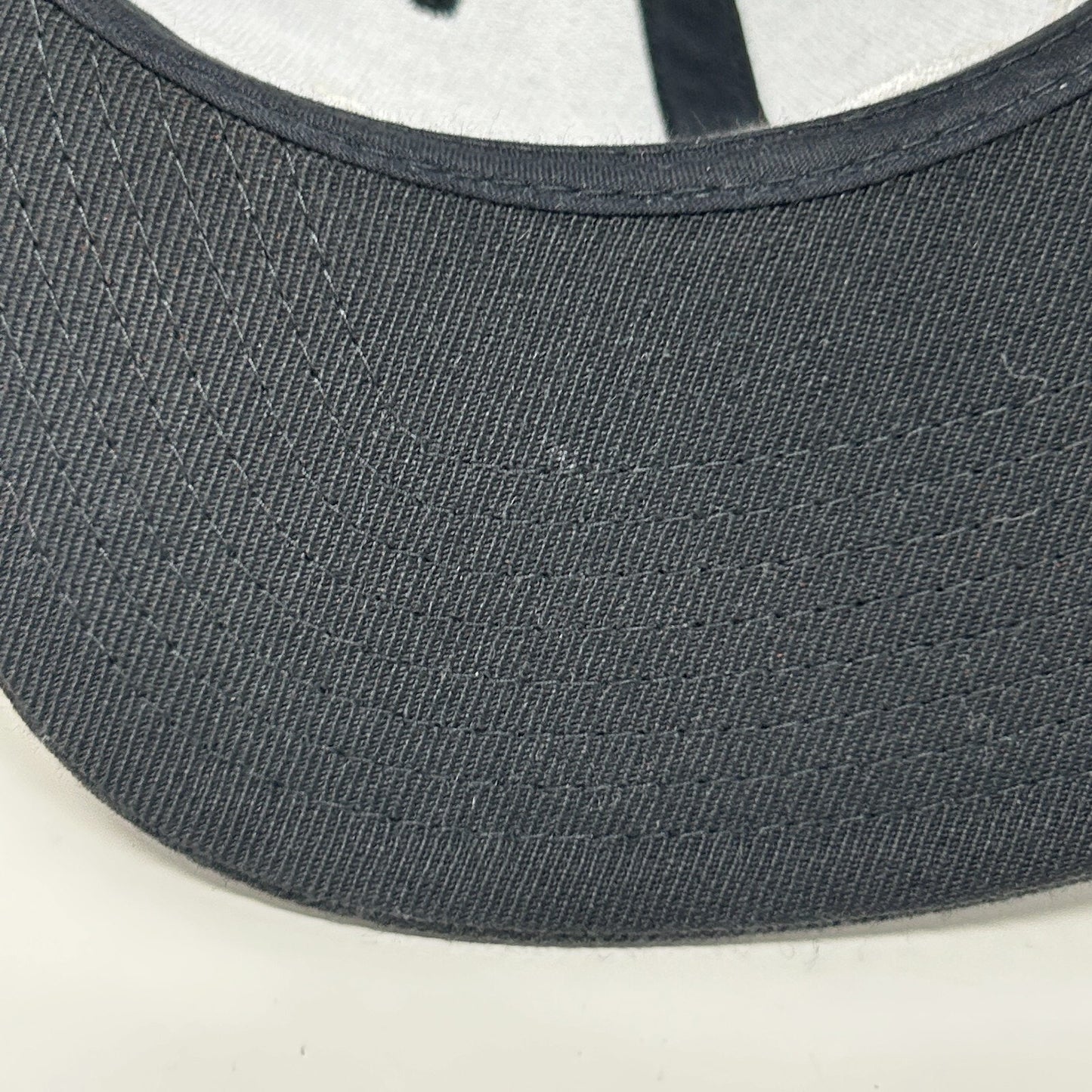 Has a small faint spot under the bill and some wrinkles on the front. No other flaws noticed. Has been cleaned and sanitized. See photos.