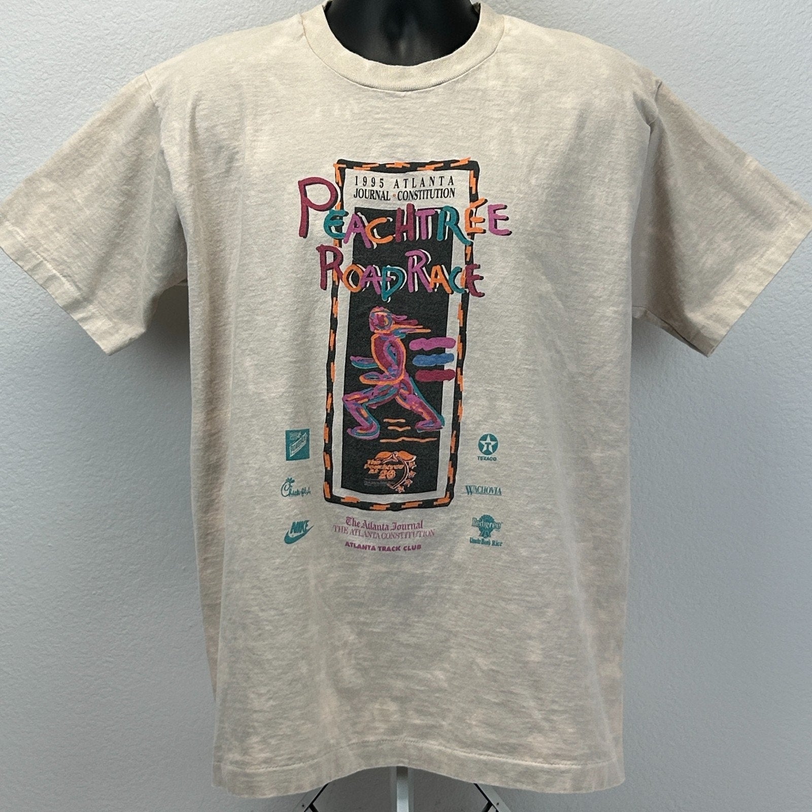 Vintage 1995 Peachtree Road Race T Shirt Mens XL X-Large Beige 90s Atlanta Georgia Running Runner Fruit of the Loom Single Stitch Made In USA Graphic Tee
