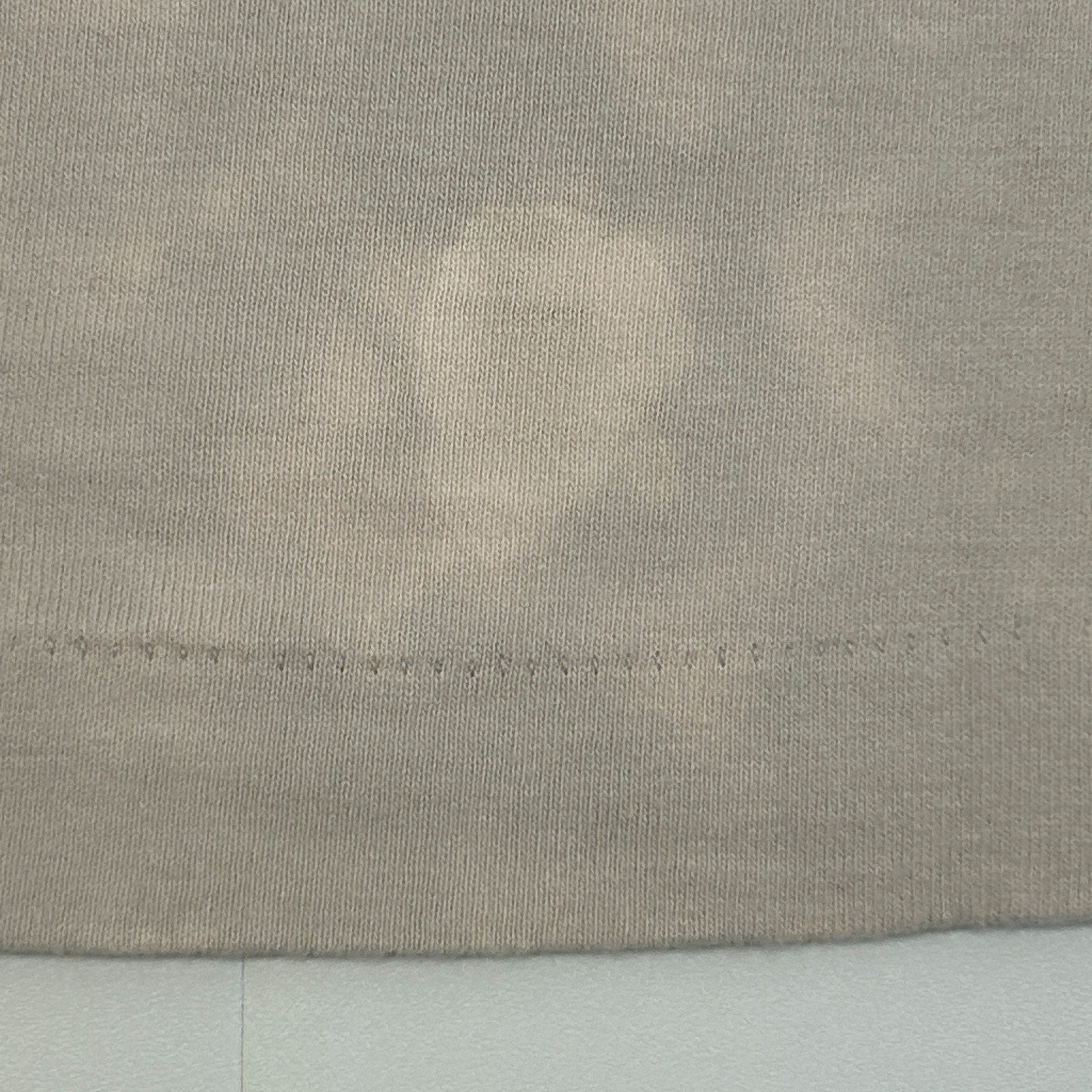 Has a bleach spot on the bottom front so I doubled down and did a bleach spot tie dye on it to make it less noticeable. No other flaws noticed. See photos.