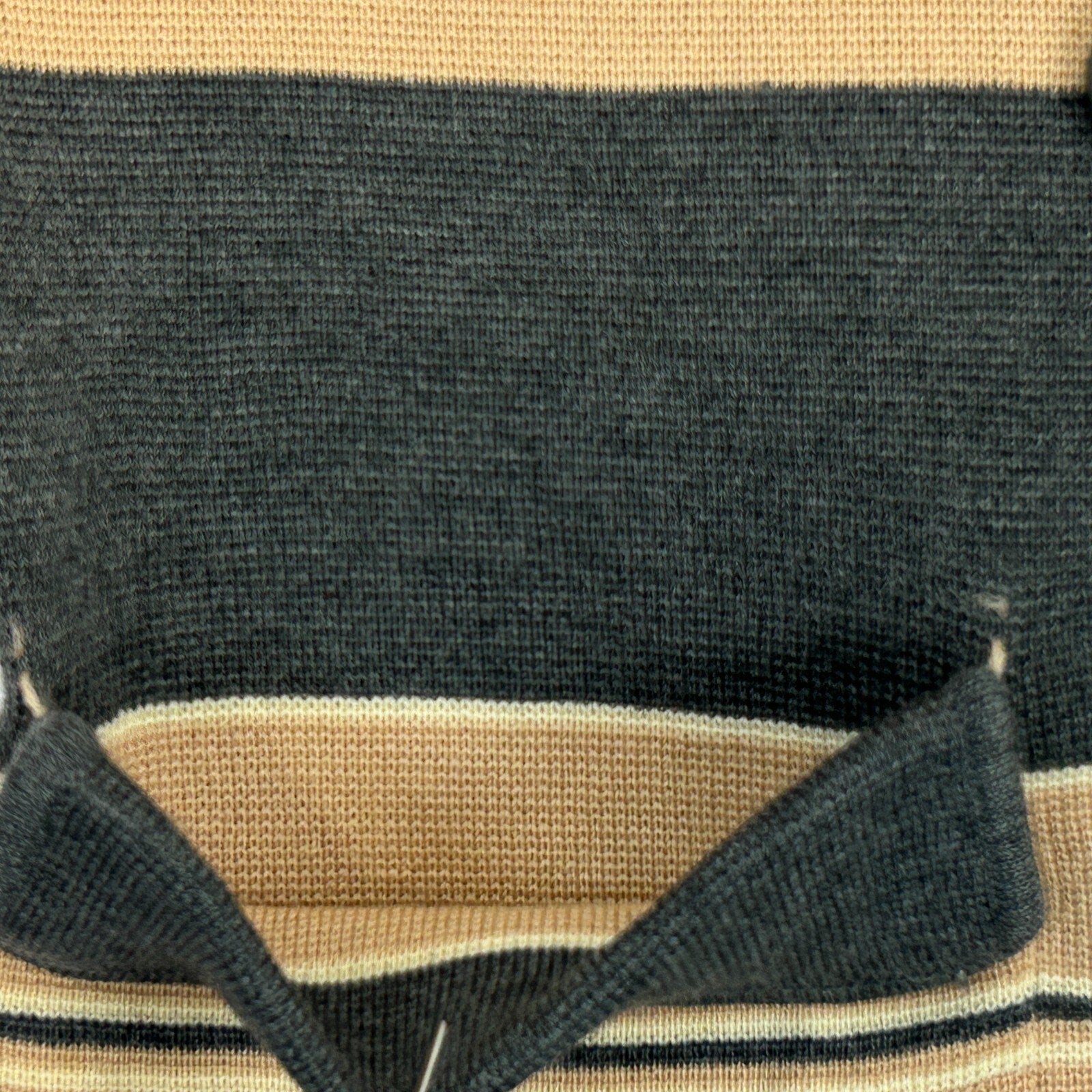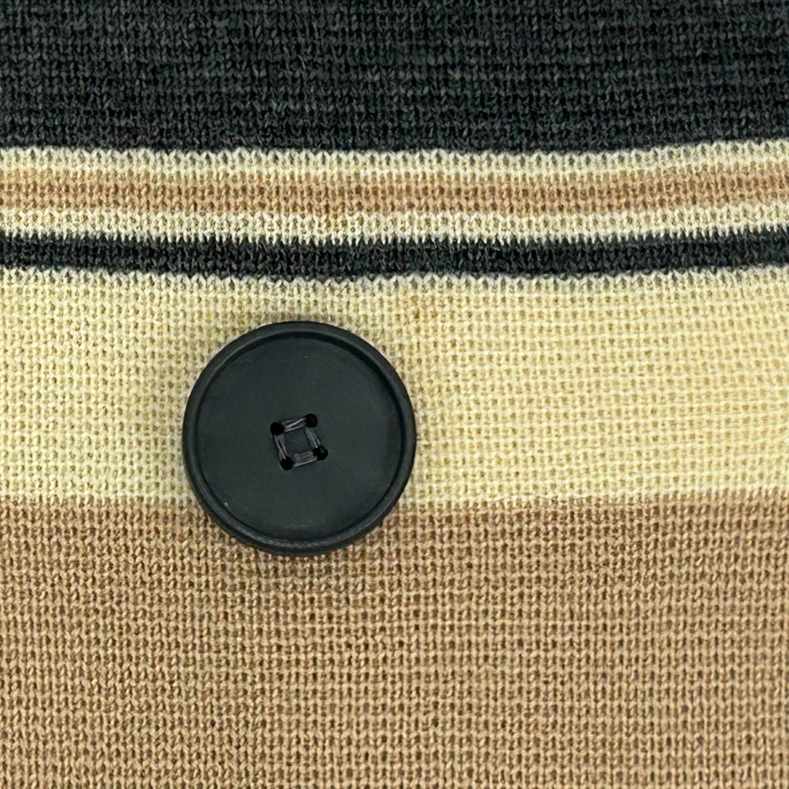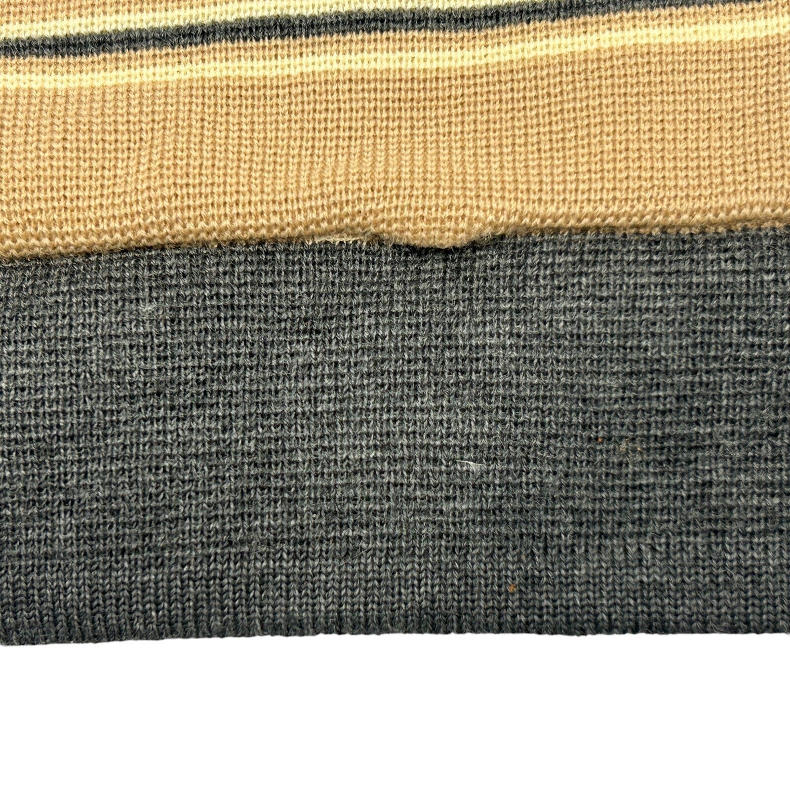 Gia Ninno For Joyce Vintage 60s Womens Wool Collared Sweater Jacket Beige Gray Striped 3/4 Sleeve