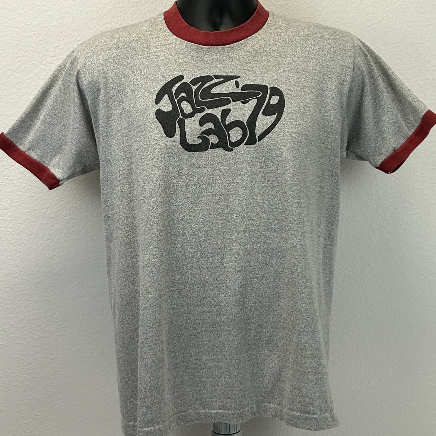 Vintage 70s Jazz Lab 79 Ringer T Shirt Mens M Medium Music 1979 Gray TownCraft Single Stitch Made In USA Graphic Tee