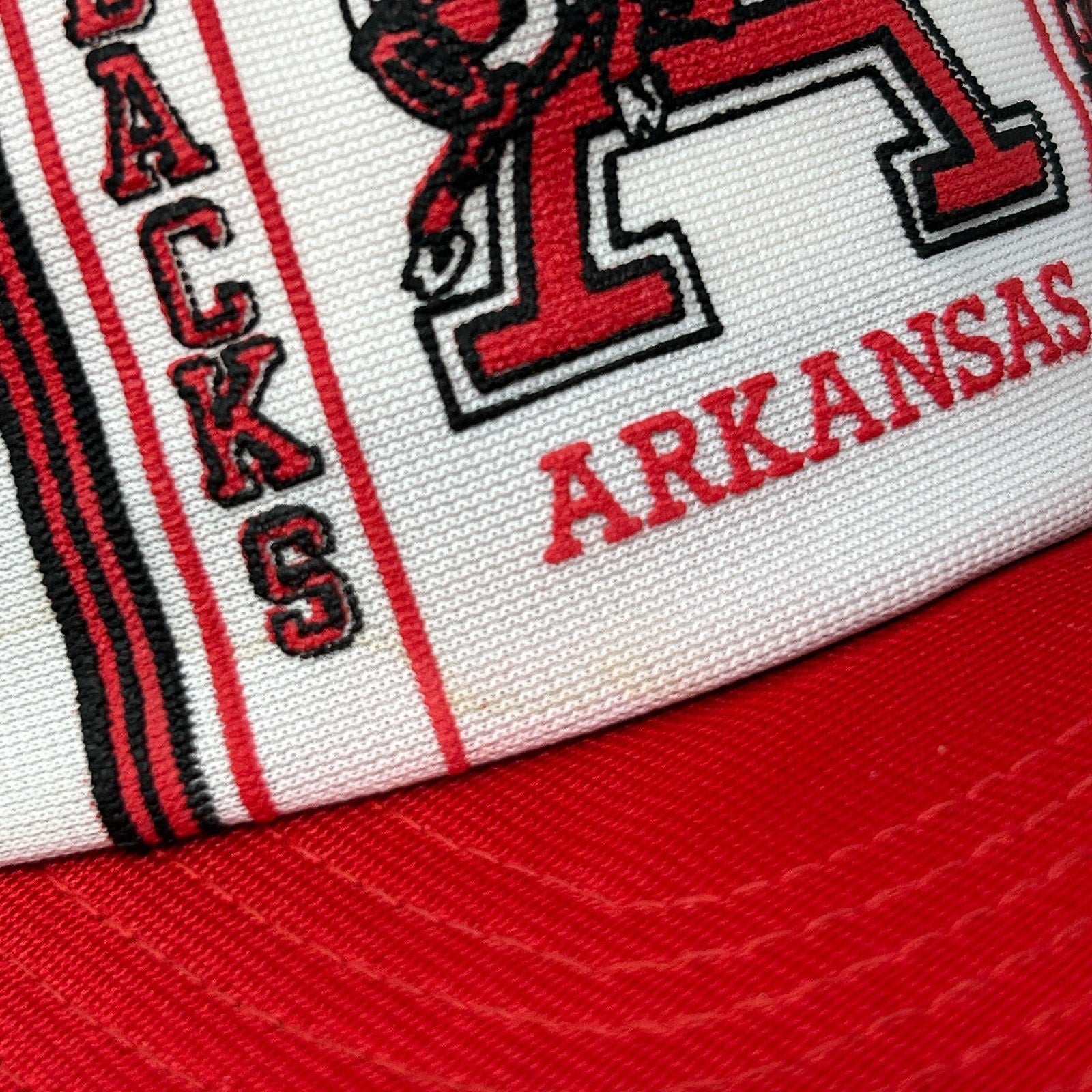 Vintage 80s University of Arkansas Razorbacks Trucker Hat Baseball Cap Red NCAA UA U OF A UArk Hogs Mesh Snapback 5 Panel A-Frame