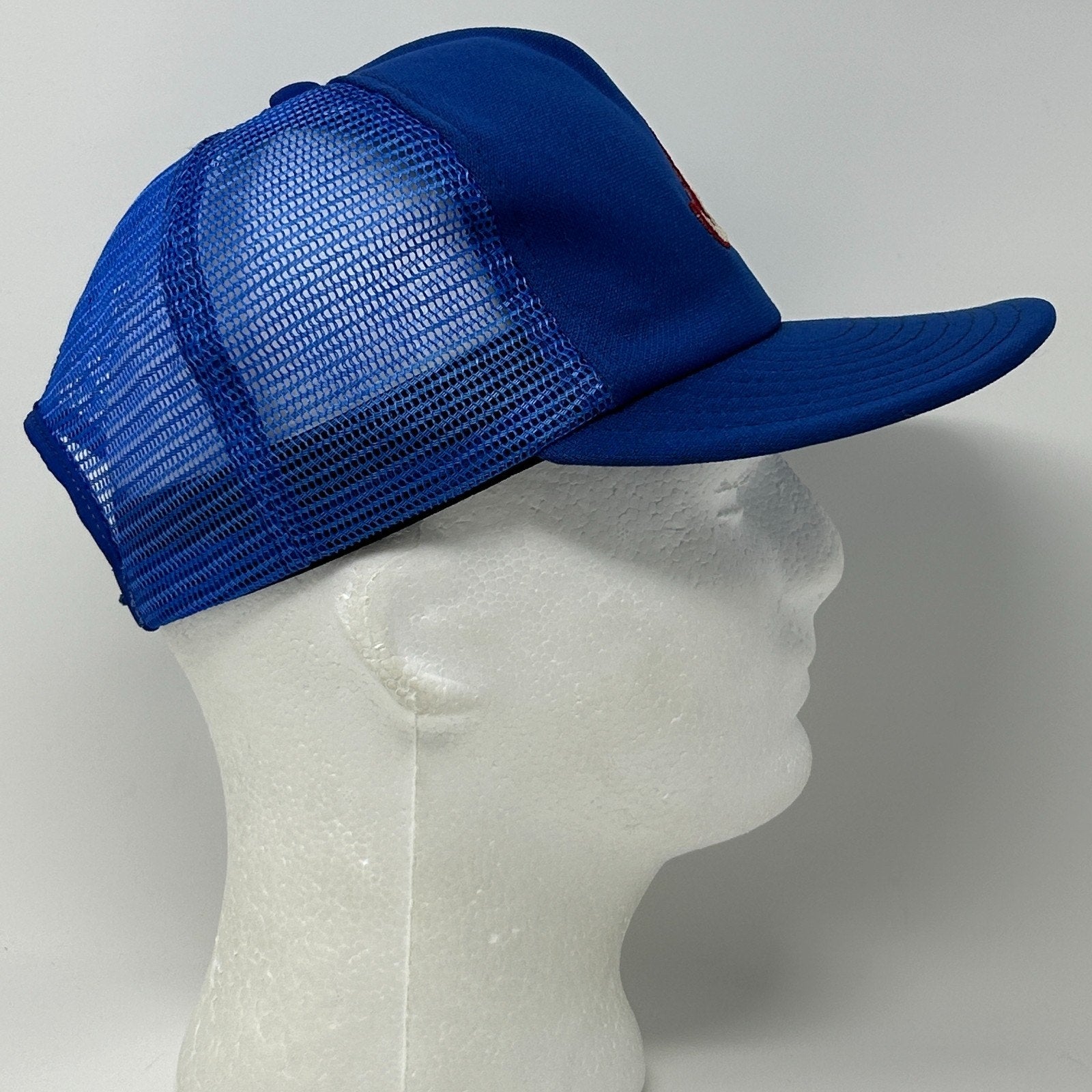 Vintage 80s Atlanta Braves Trucker Hat Baseball Cap MLB Mesh Snapback Blue 5 Panel A-Frame AJD Made In USA