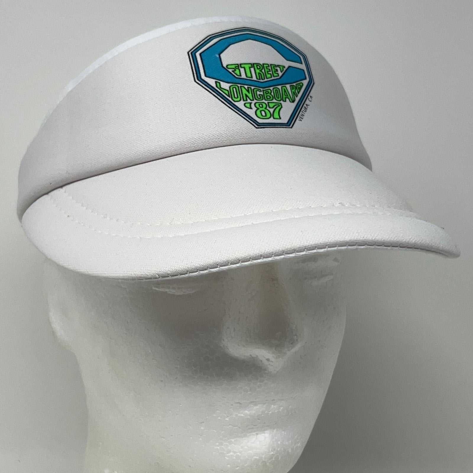 Vintage 80s C Street Longboard Classic 1987 Visor Hat Cap Surfing Surfer Surfboarding Surfboarder Competition Contest Ventura California Strapback White