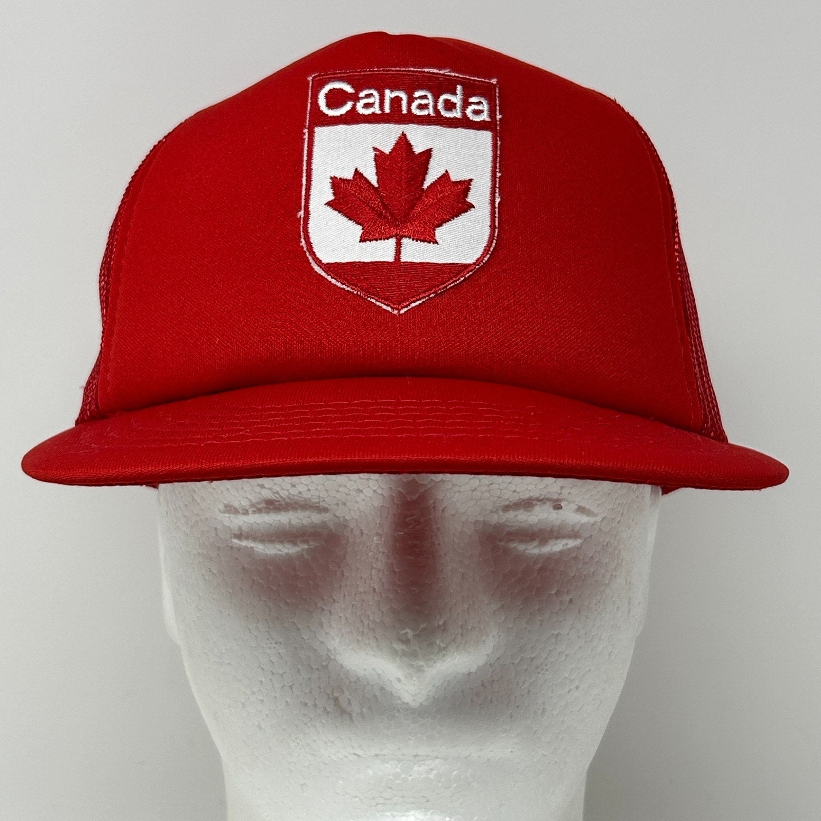 Vintage 80s Canadian Trucker Hat Baseball Cap Red Canada Maple Leaf Snapback