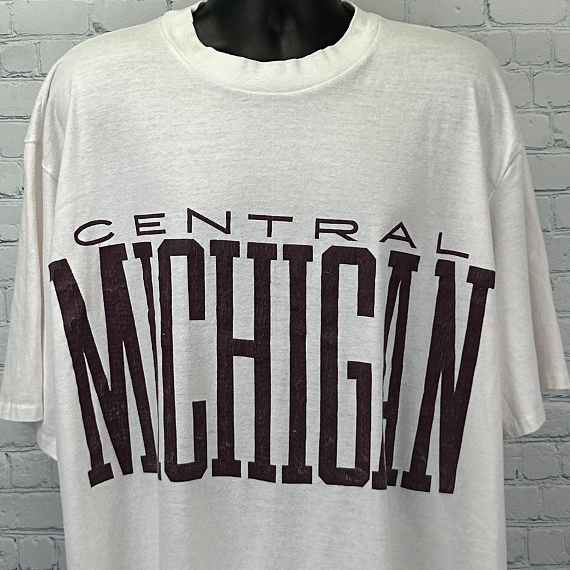 Vintage 80s Central Michigan University Sleep T Shirt CMU Chippewas White OSFA