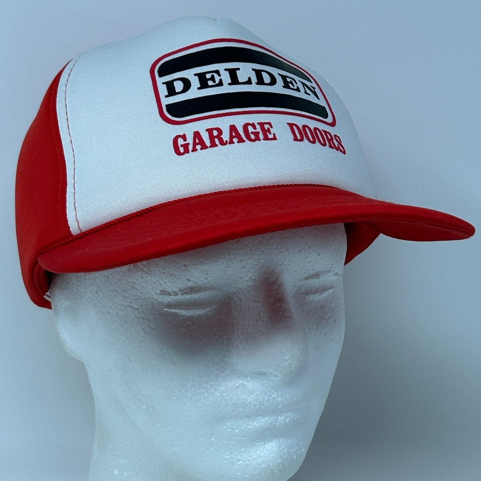Vintage 80s Delden Garage Doors Hat Baseball Cap Logo Full Foam Snapback Red 5 Panel A-Frame