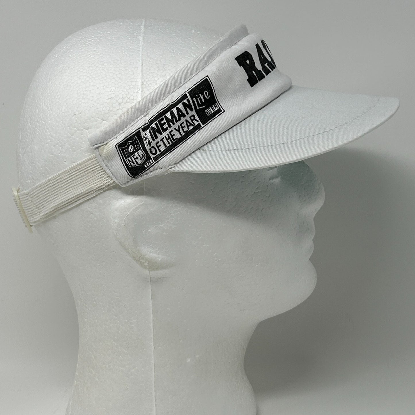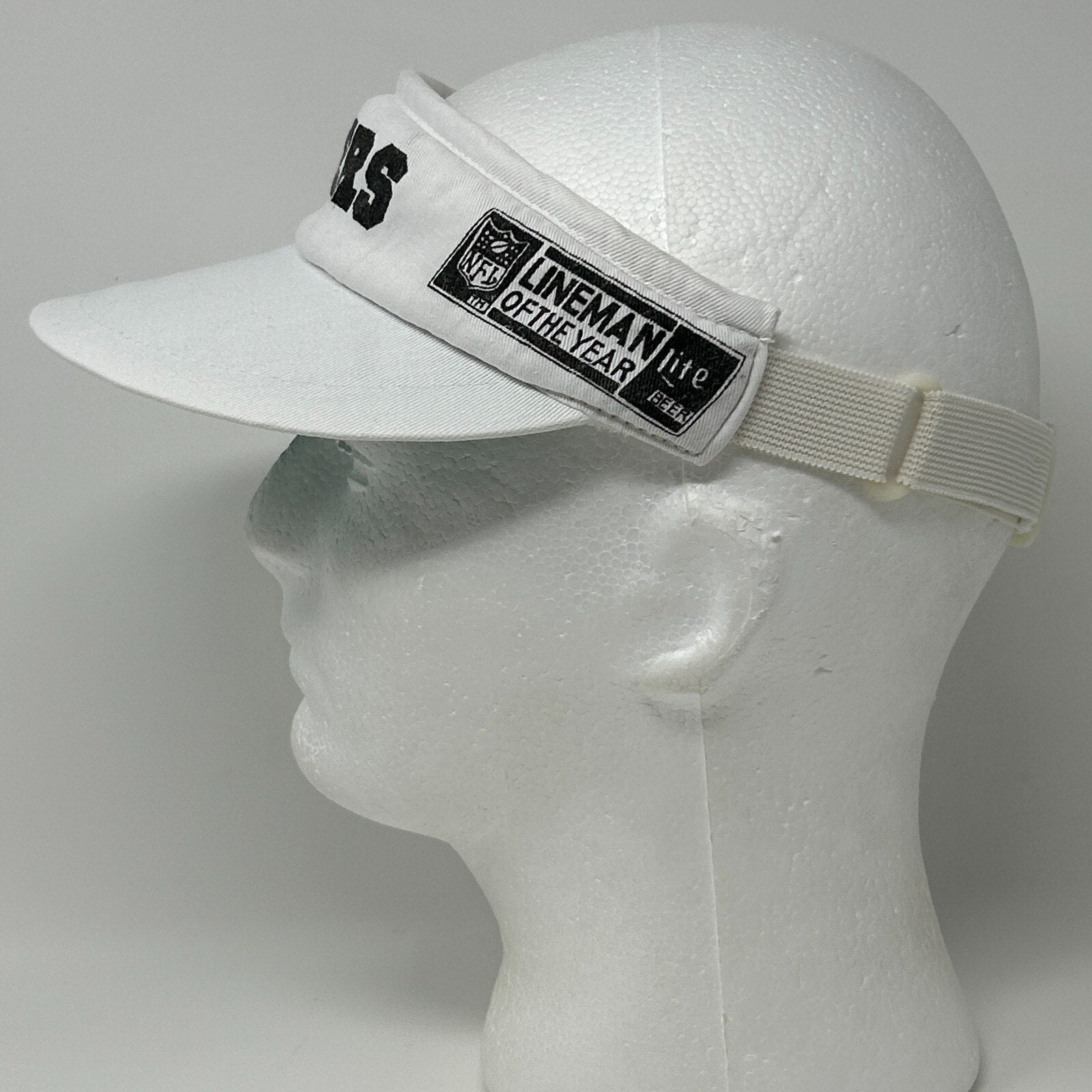 Vintage 80s Las Vegas Raiders Visor Hat Cap Lineman of the Year NFL Football Lite Beer Strapback White