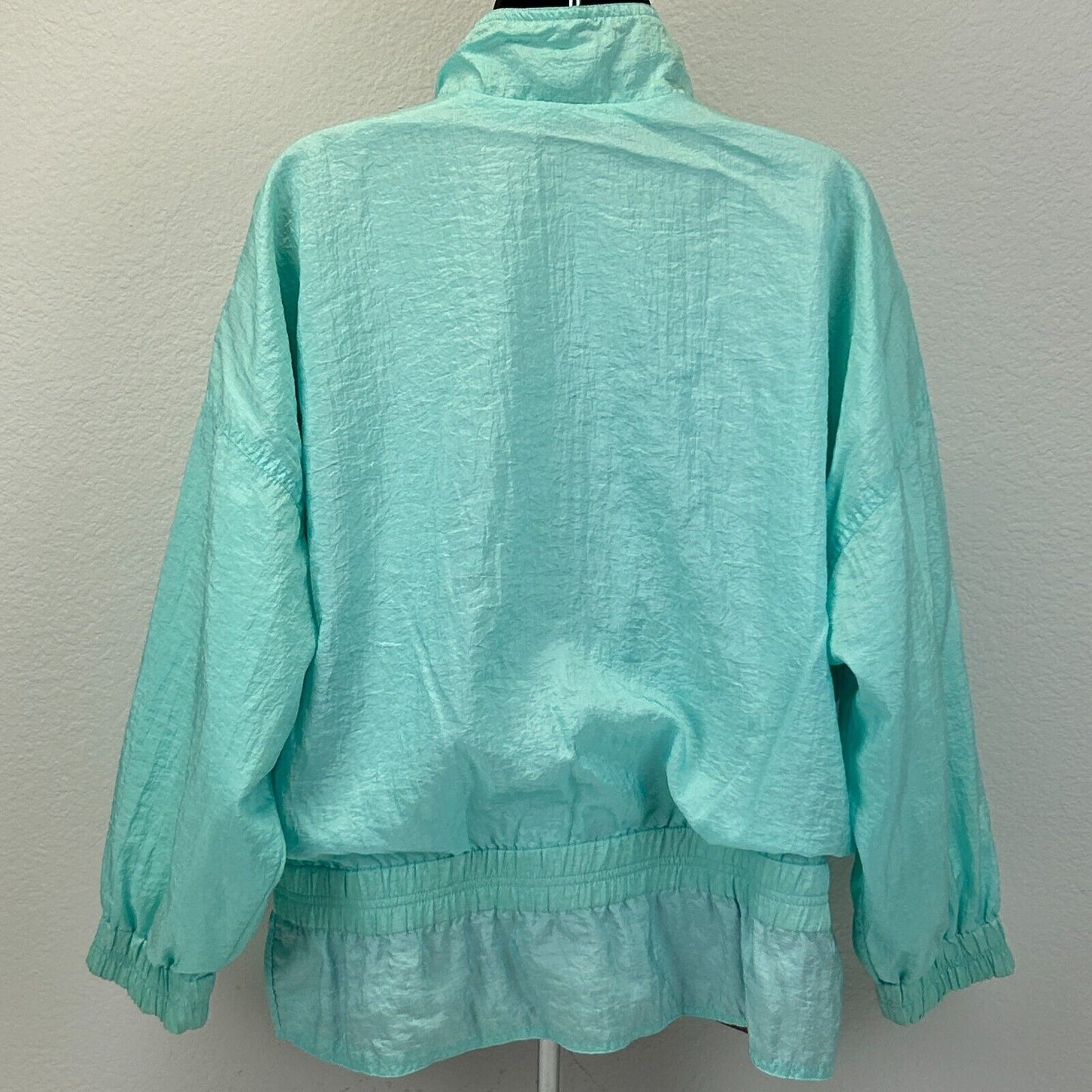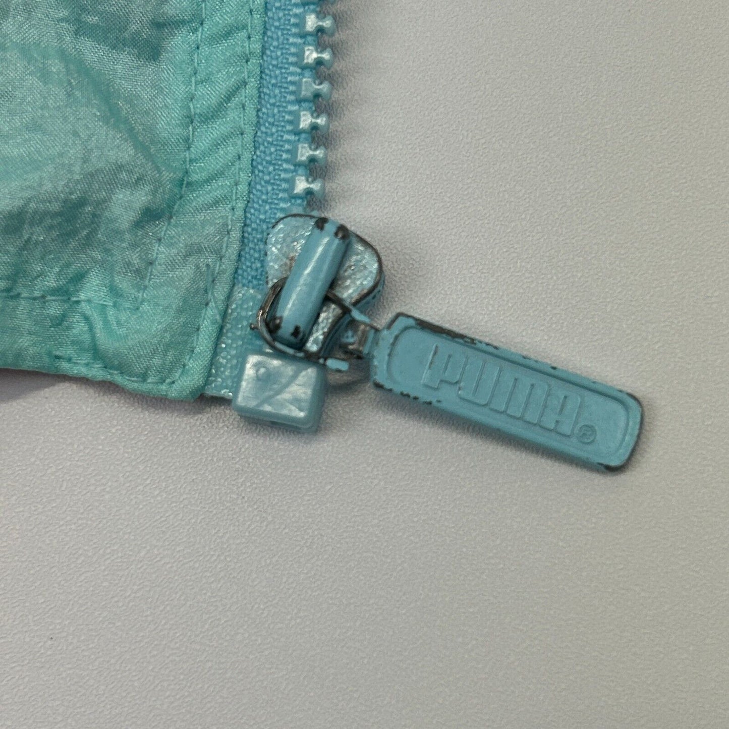 Vintage 80s Puma Windbreaker Jacket Womens Large Track Full Zip Pockets Blue