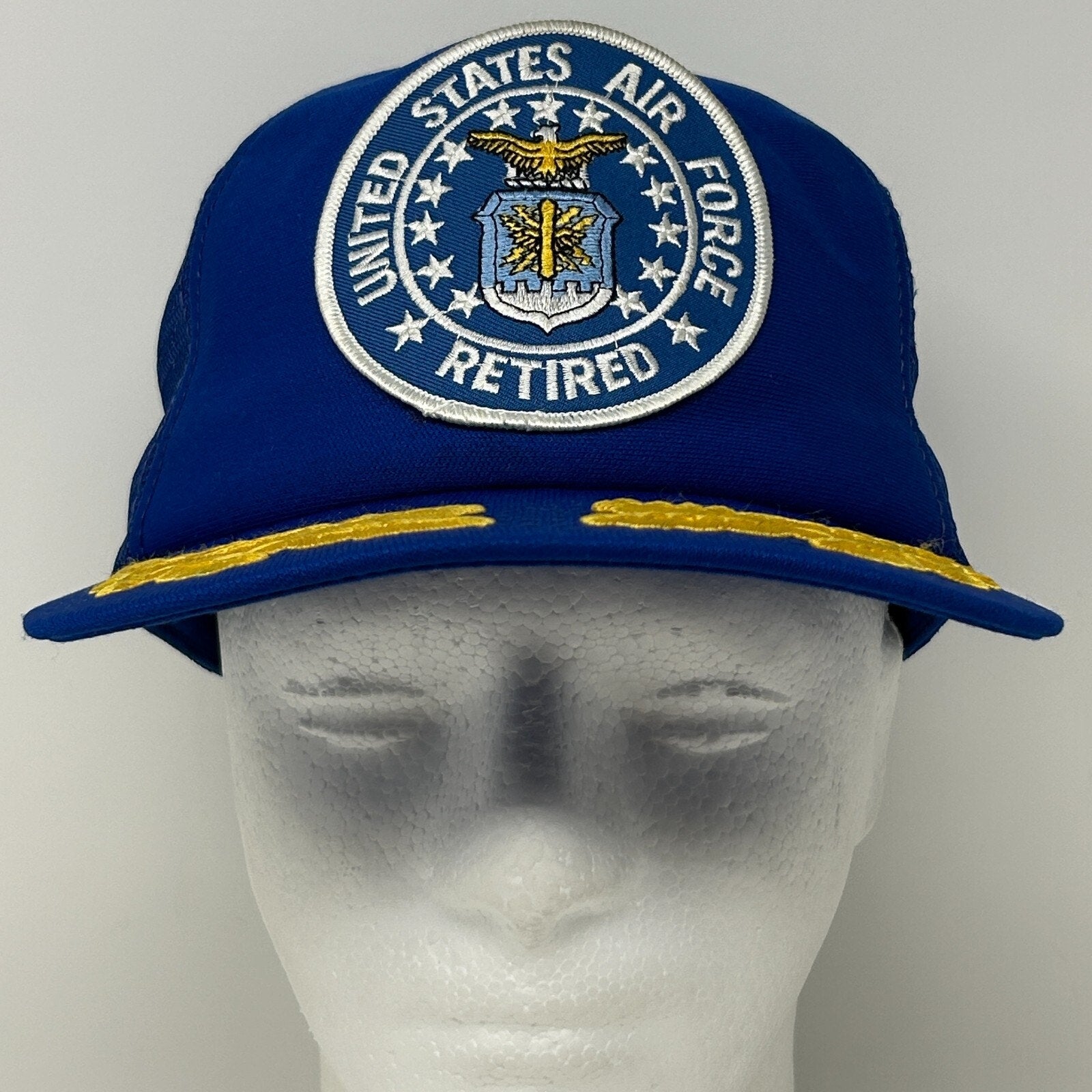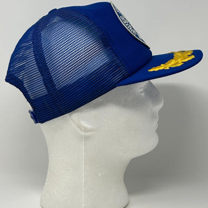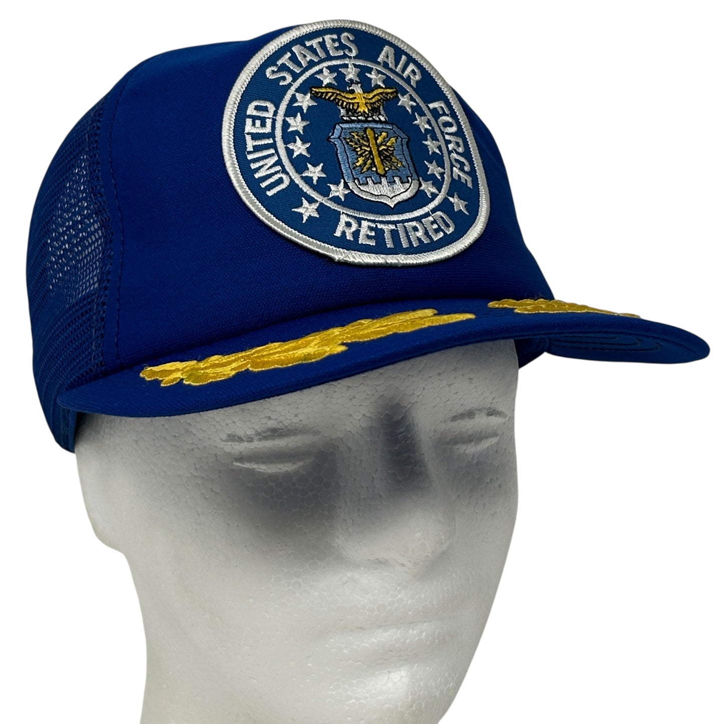 Vintage 80s US Air Force Retired Trucker Hat Cap Blue USAF Gold Scrambled Eggs