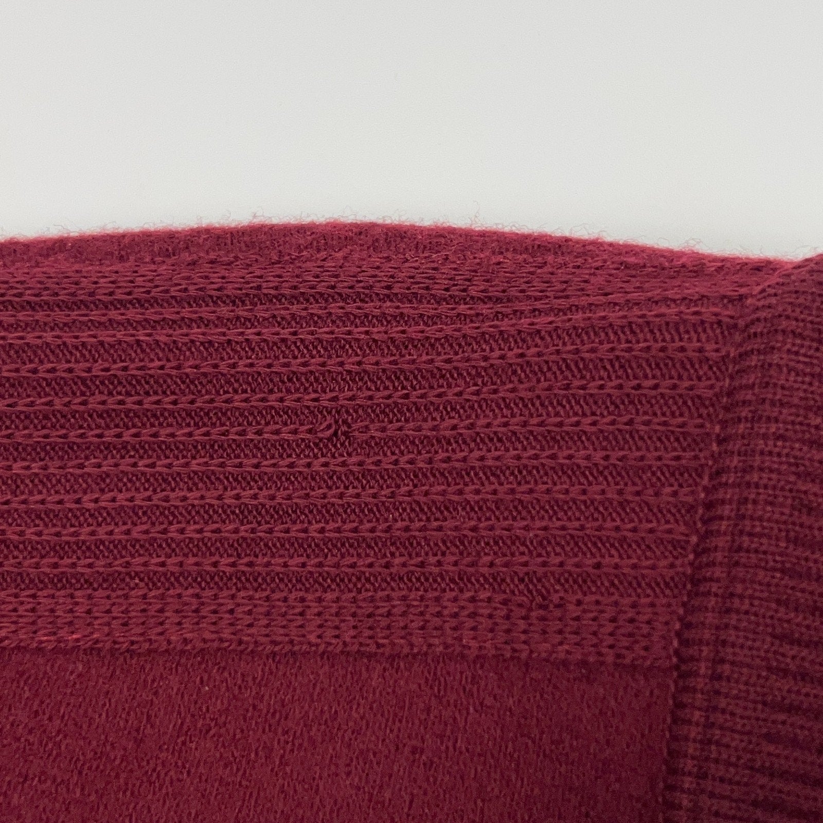 Has one moth hole on a sleeve and a handful of thin spots. No other flaws noticed. Tag is a Large but I feel it measures more similar to a modern Medium. Check measurements to ensure fit. See photos for details.
