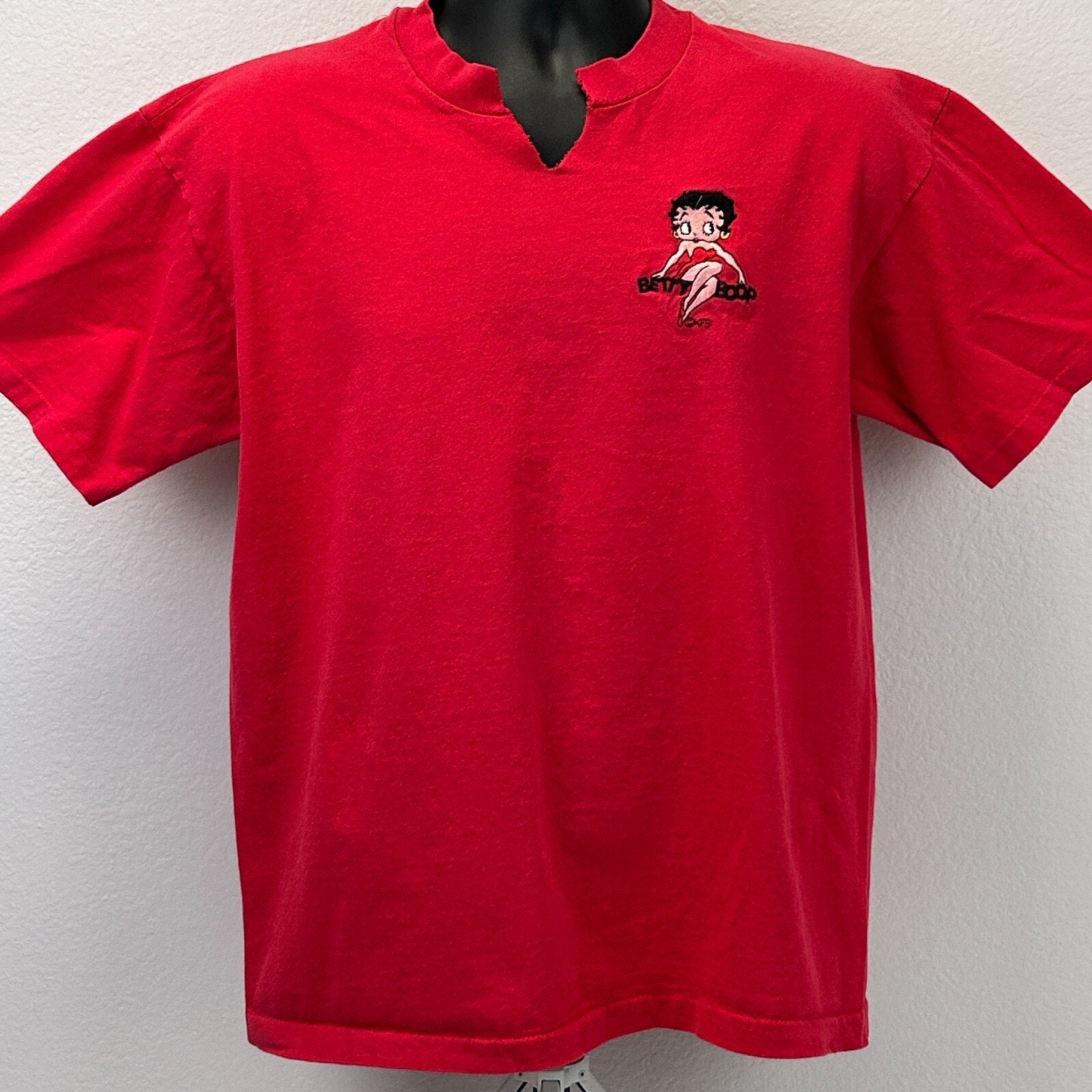 Vintage 90s Betty Boop Embroidered T Shirt Mens L Large Cartoon Made In USA Red