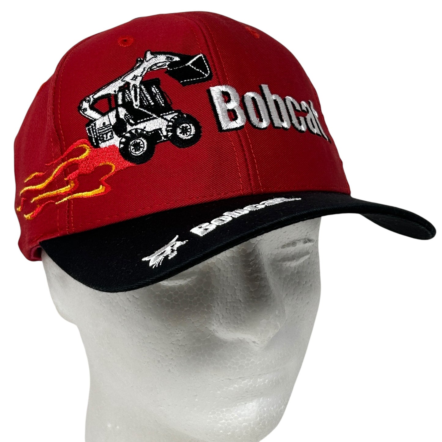 Vintage Bobcat Company Hat Baseball Cap 90s Farmer Farming Construction Equipment Flames Fire Red Cyrk 6 Panel Snapback