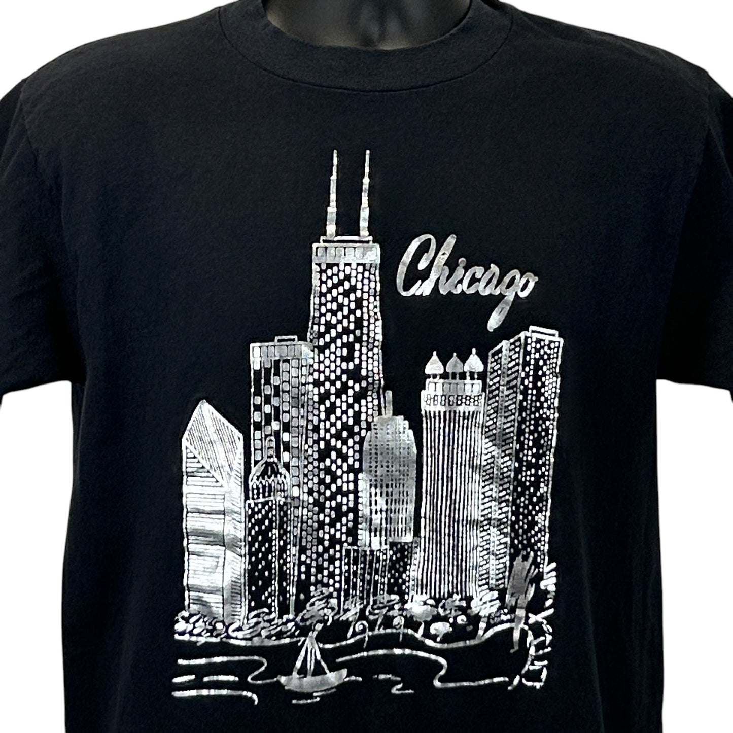 Vintage 90s Chicago Illinois T Shirt Mens Medium Travel Tourist Tourism Black Oneita Single Stitch Made In USA Graphic Tee
