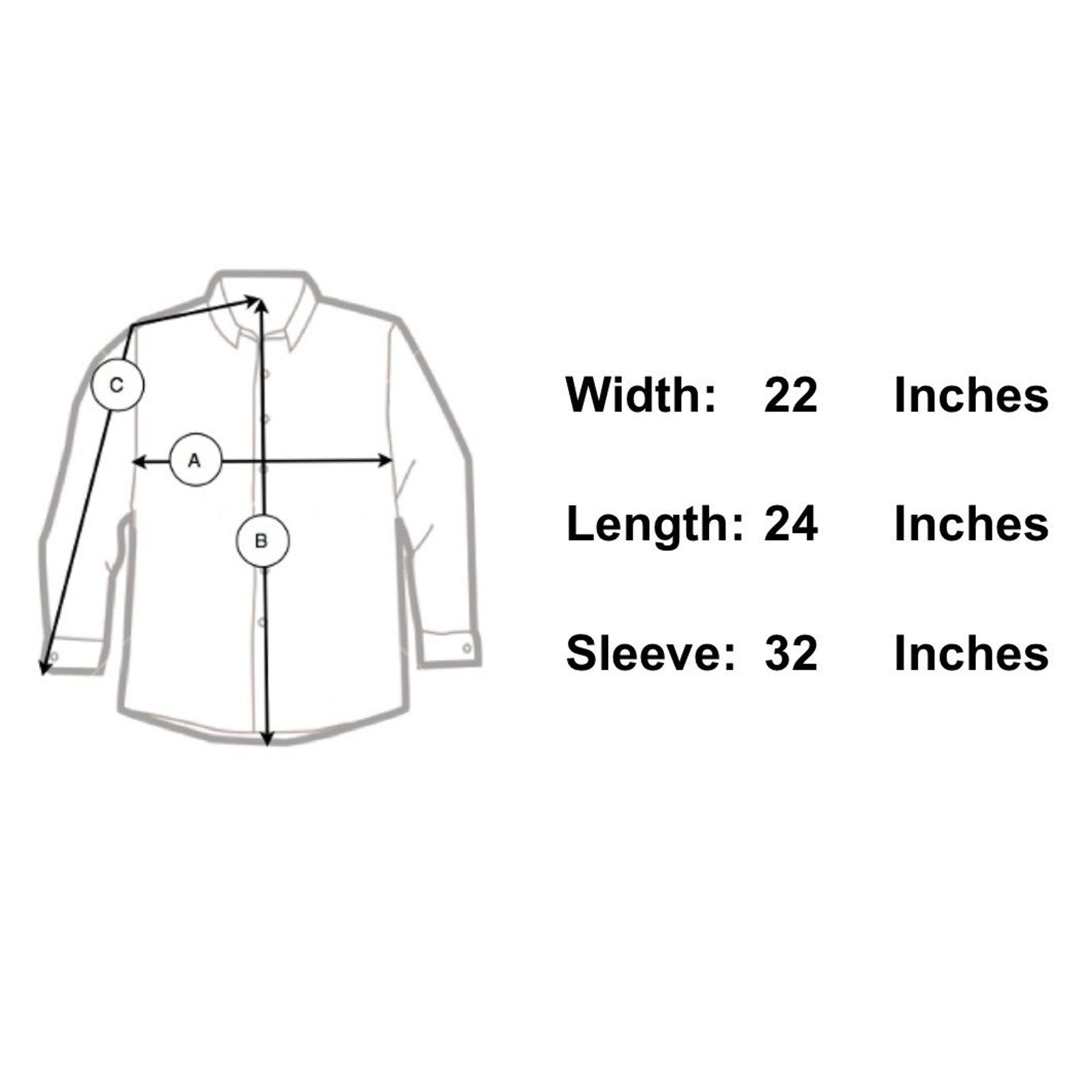 Sleeve Length 33" - From the center of the back of the neck to the shoulder to the bottom of the sleeve