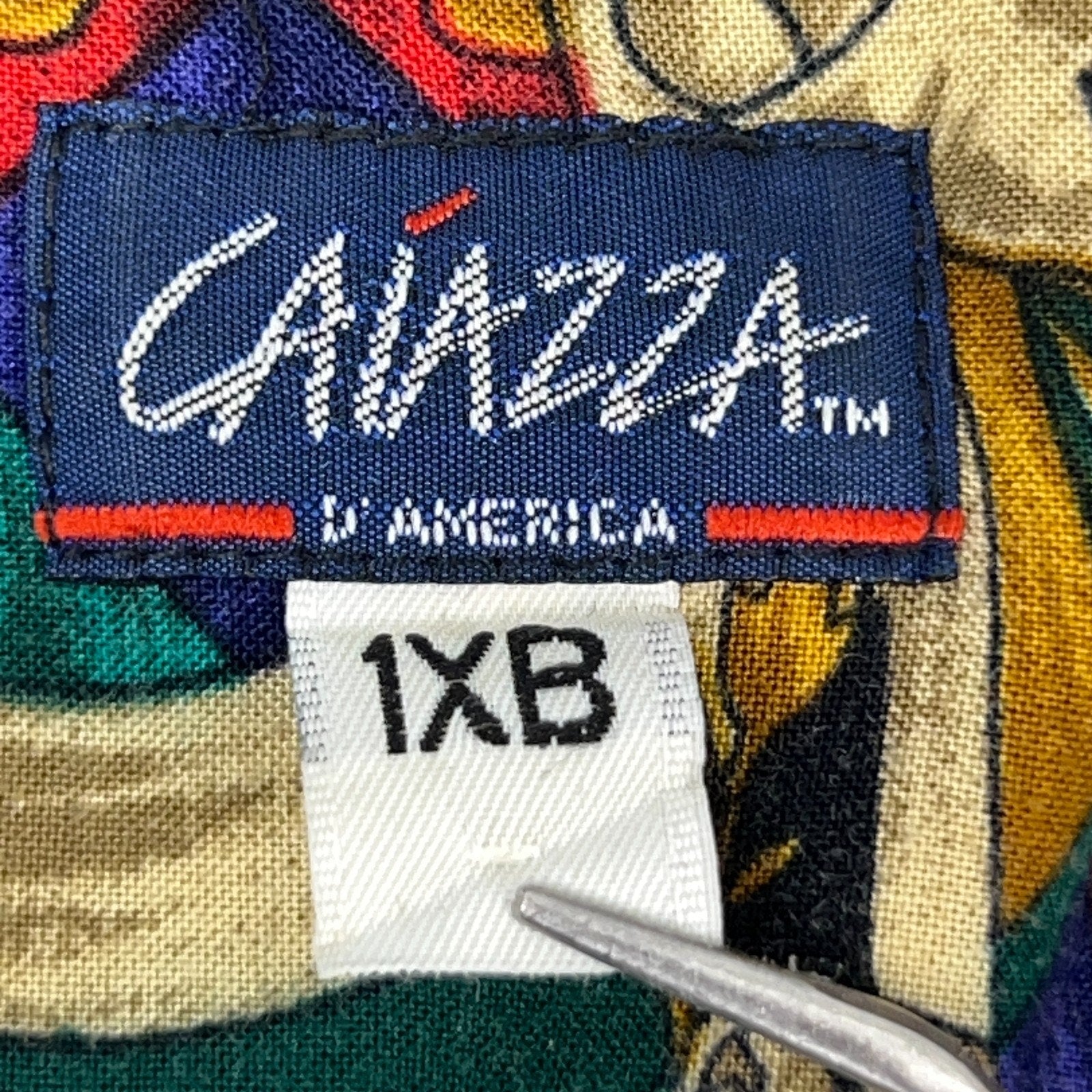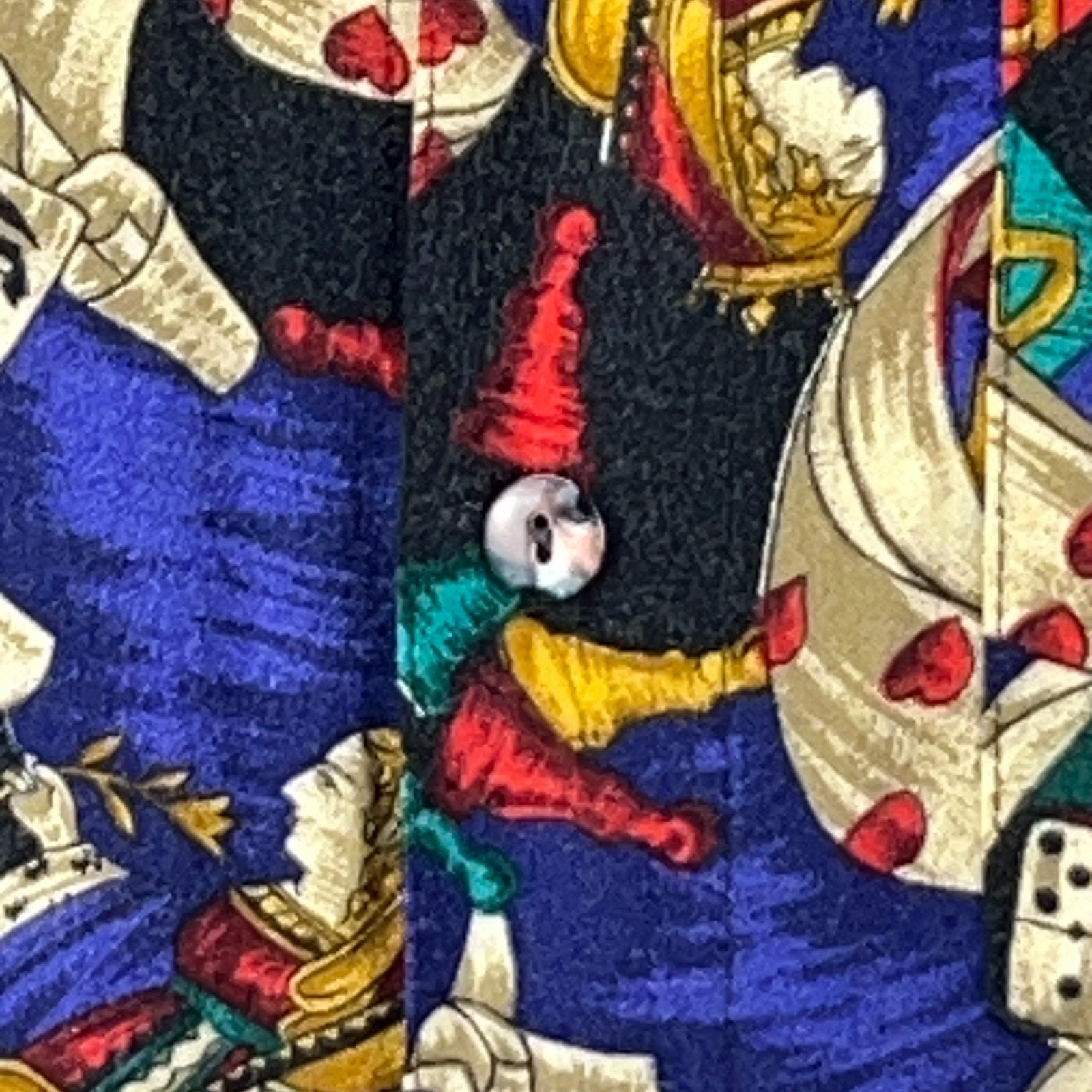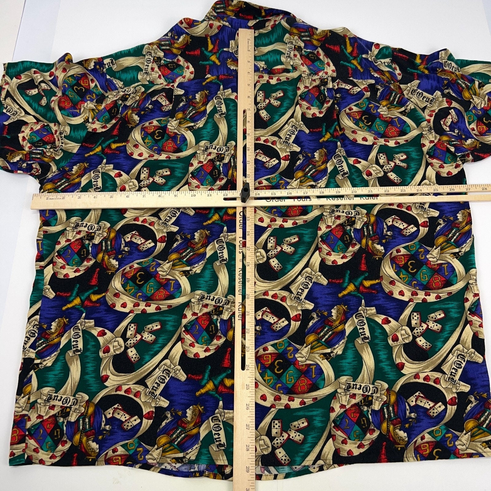 Vintage 90s Coeur Queen of Hearts Dominos Button Front Shirt Beige USA Mens 1XB