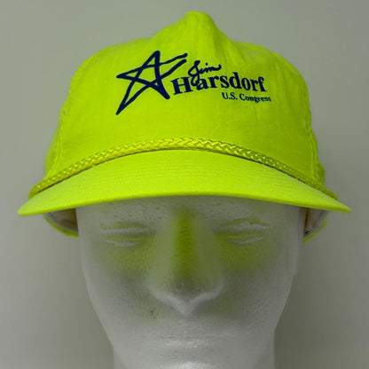 Vintage 90s Jim Harsdorf US Congress Hat Cap Republican Party Rope Neon Yellow