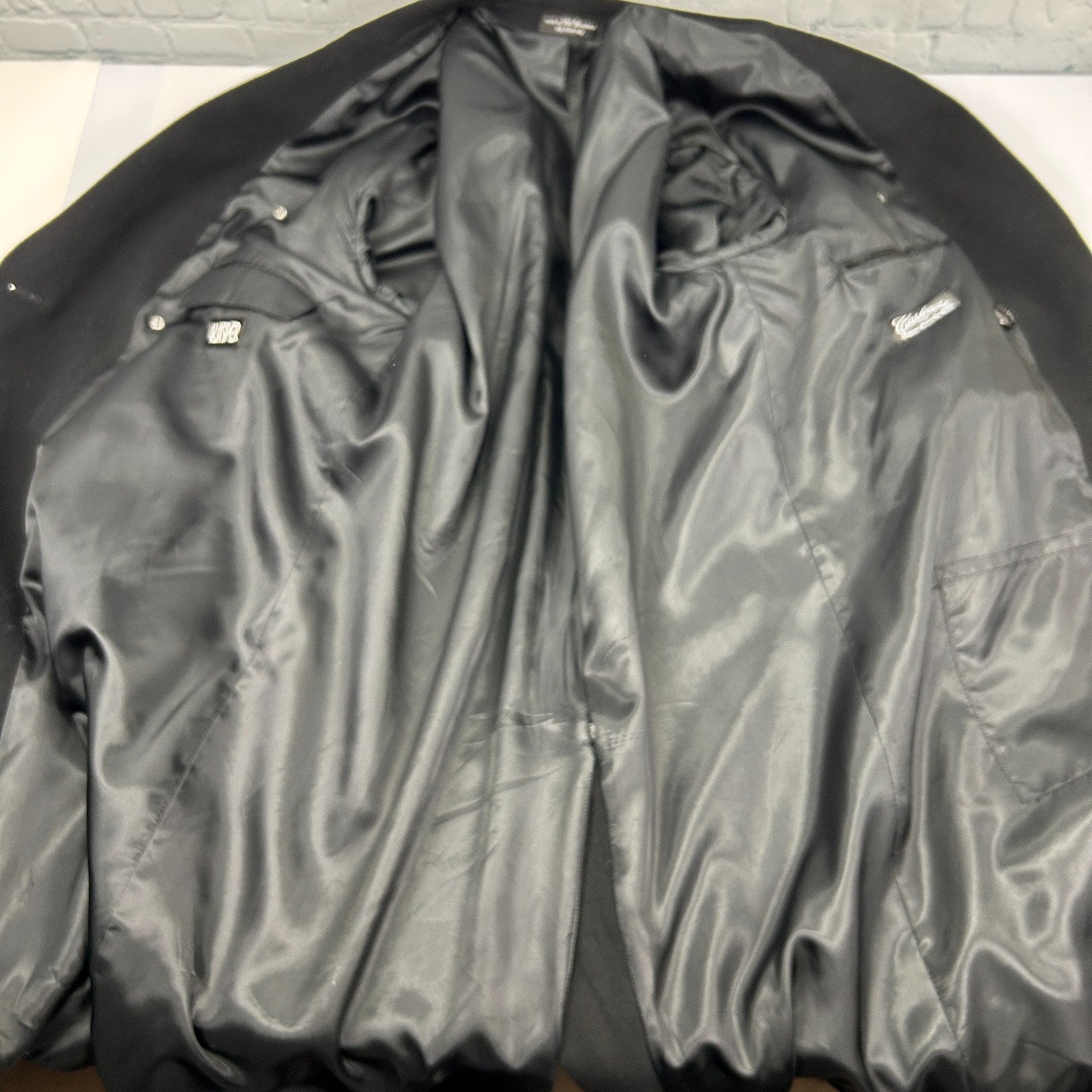 Vintage 90s Kasper Cashmere Blend Double Breasted Overcoat Jacket Wool Black 42S 42 Short