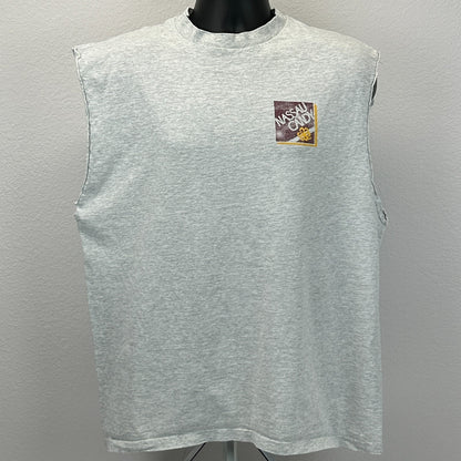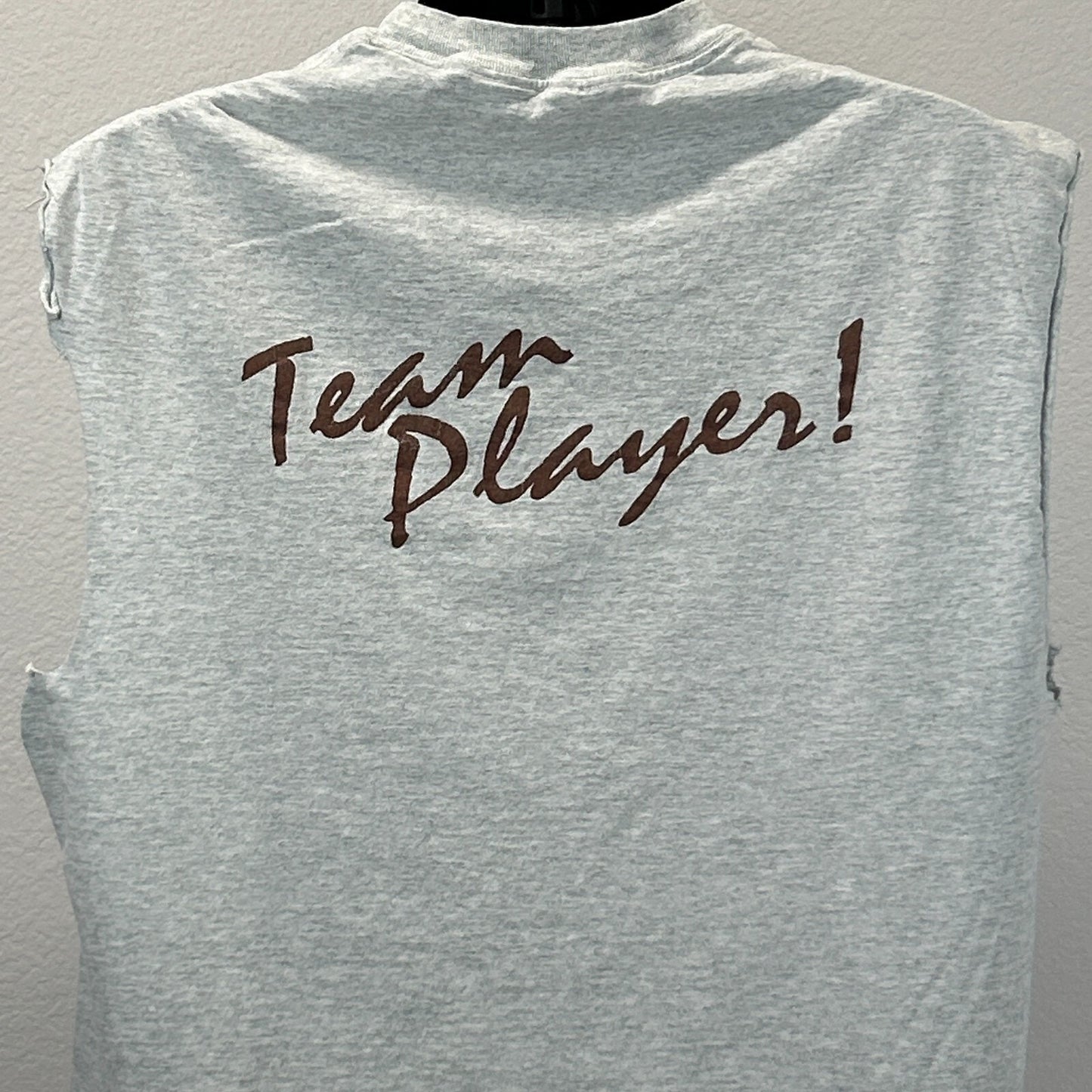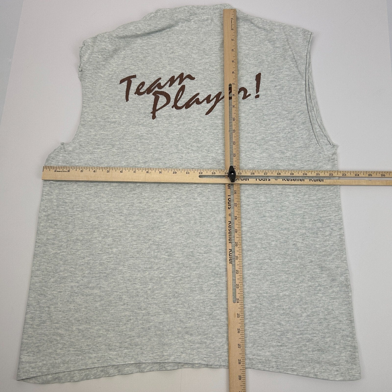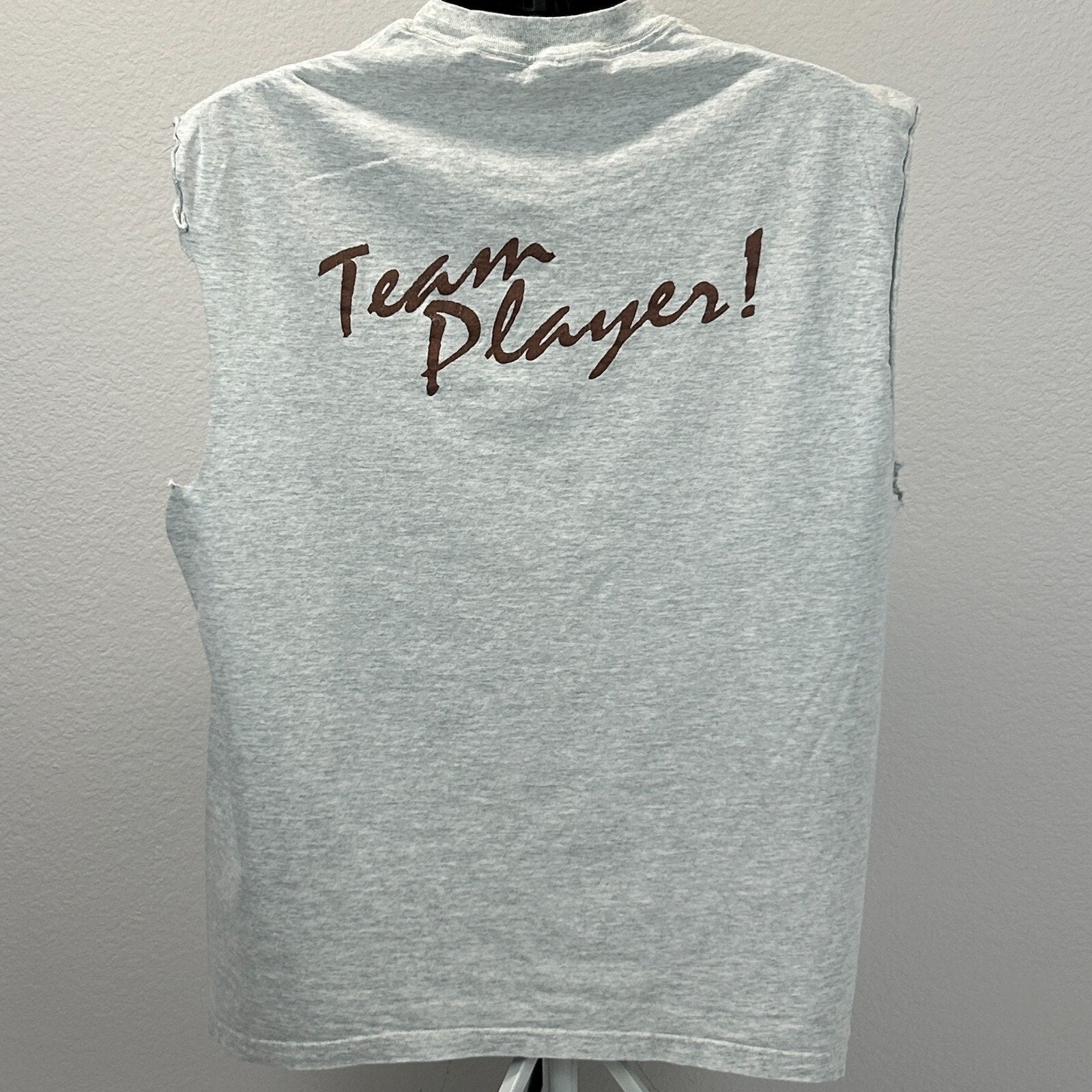 Vintage 90s Nassau Candy Team Player T Shirt Mens XL X-Large Gray Employee Staff Fruit of the Loom Sleeveless Graphic Tee
