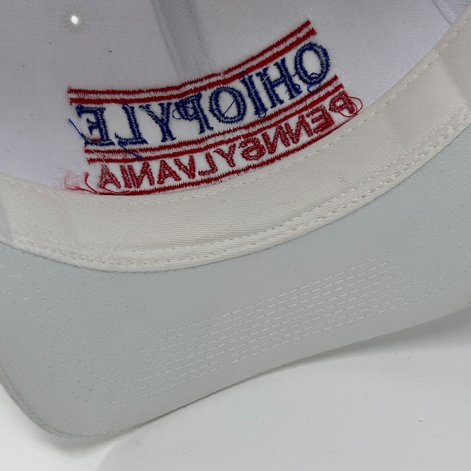 Vintage 90s Ohiopyle Pennsylvania Hat Baseball Cap 3 Bar Line Snapback White