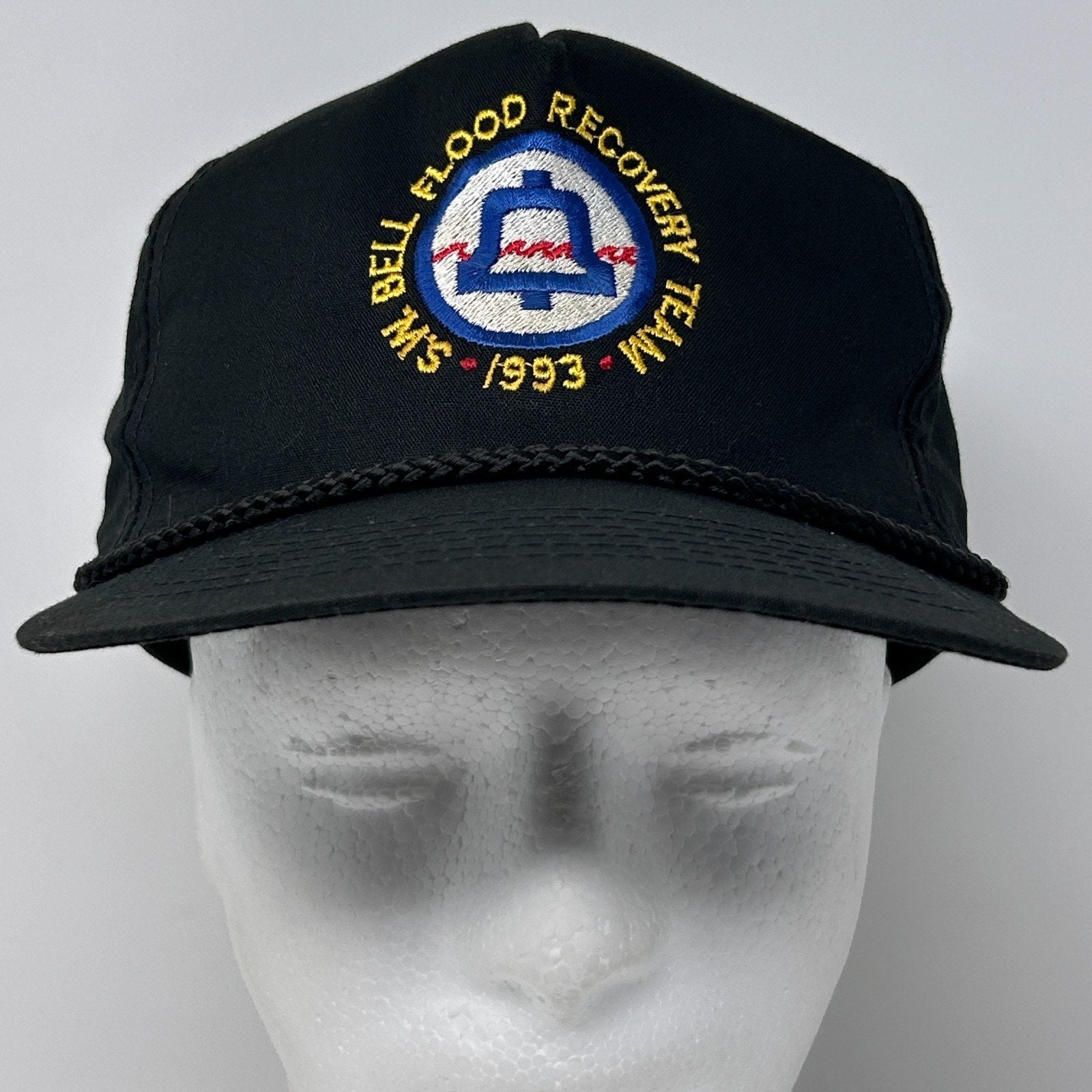 Vintage 90s SW Bell Flood Recovery Team 1993 Hat Baseball Cap Southwestern Bell Telephone Company Rope Corded Snapback Black 5 Panel A-Frame Young An YA Headwear