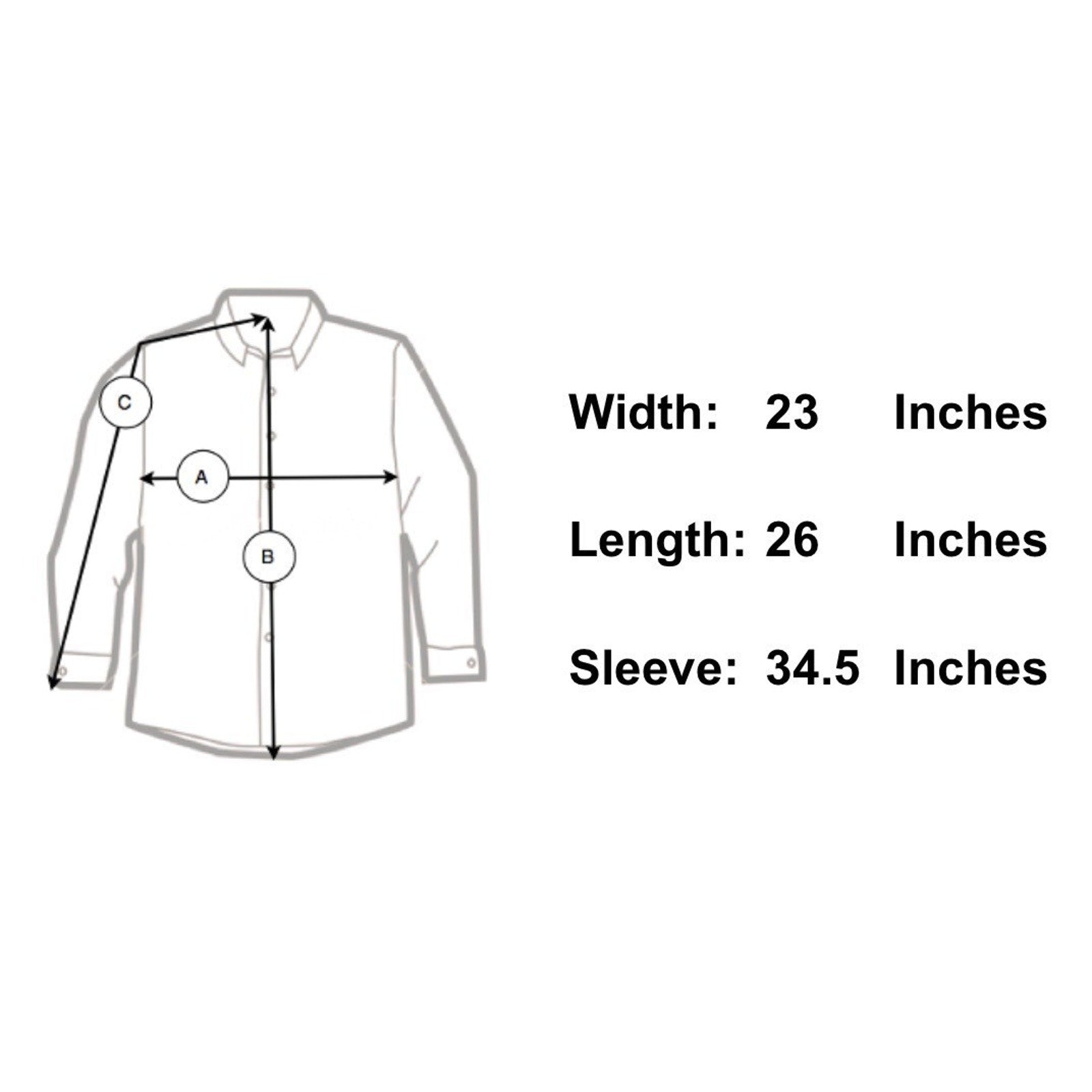 Sleeve Length 34.5" - From the center of the back of the neck to the shoulder to the bottom of the sleeve