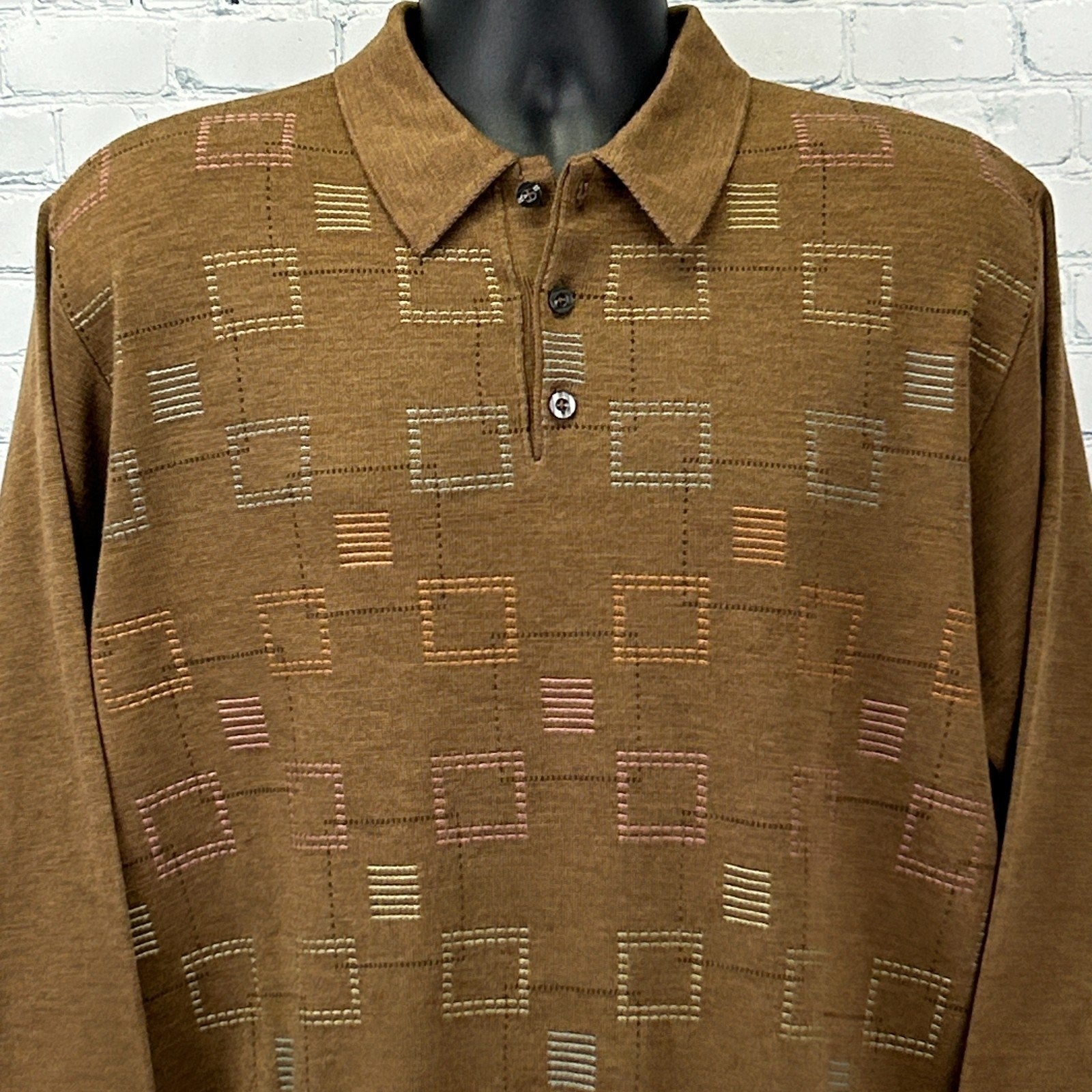 Vintage 90s St Croix Shop Wool Blend Polo Sweater Geometric Brown Mens L Large