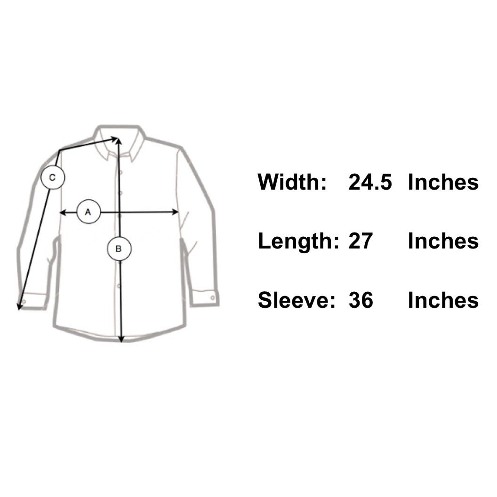 Sleeve Length 36" - From the center of the back of the neck to the shoulder to the bottom of the sleeve