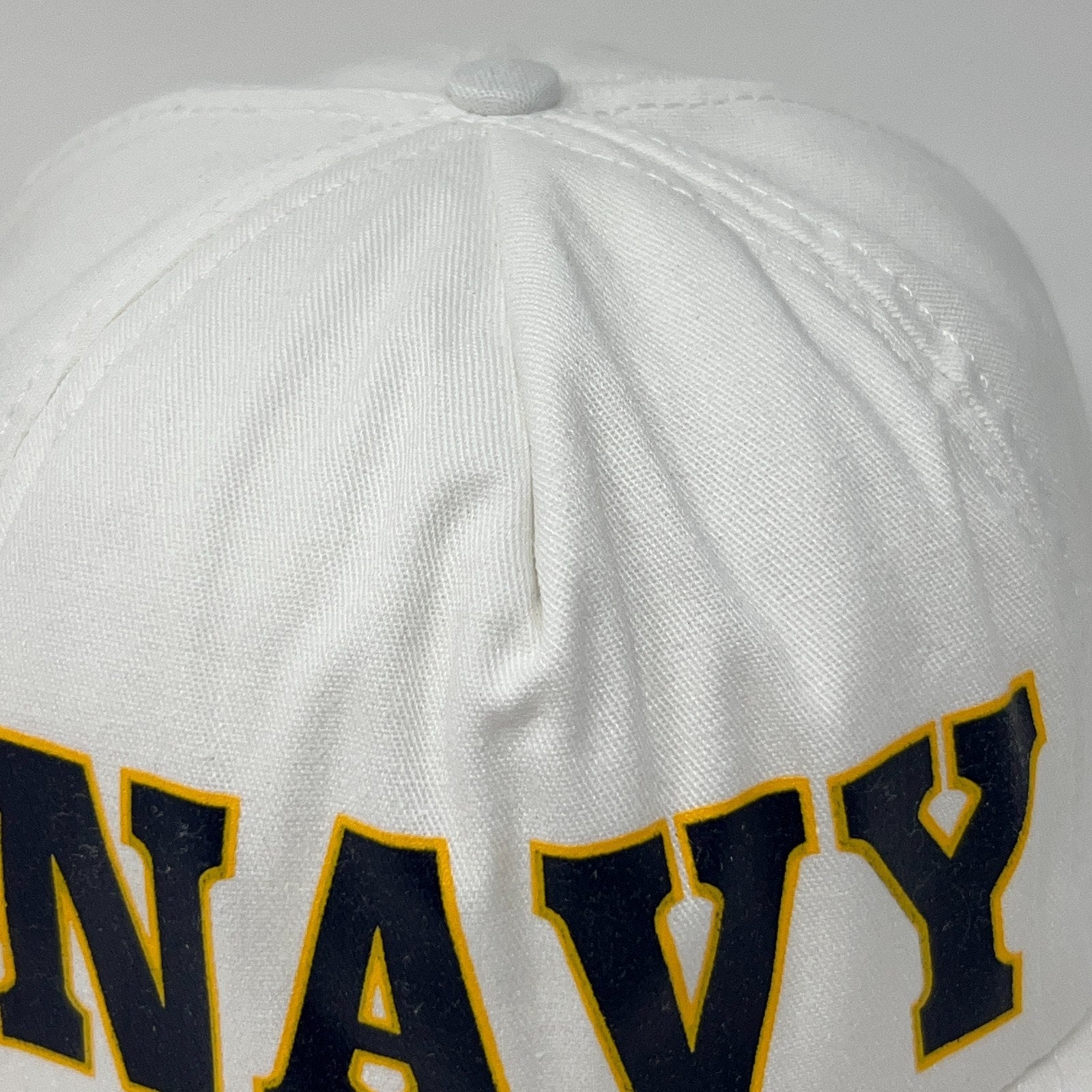 Vintage 90s US Navy Hat Baseball Cap USN United States Military Snapback White 5 Panel A-Frame Broadway Made In USA