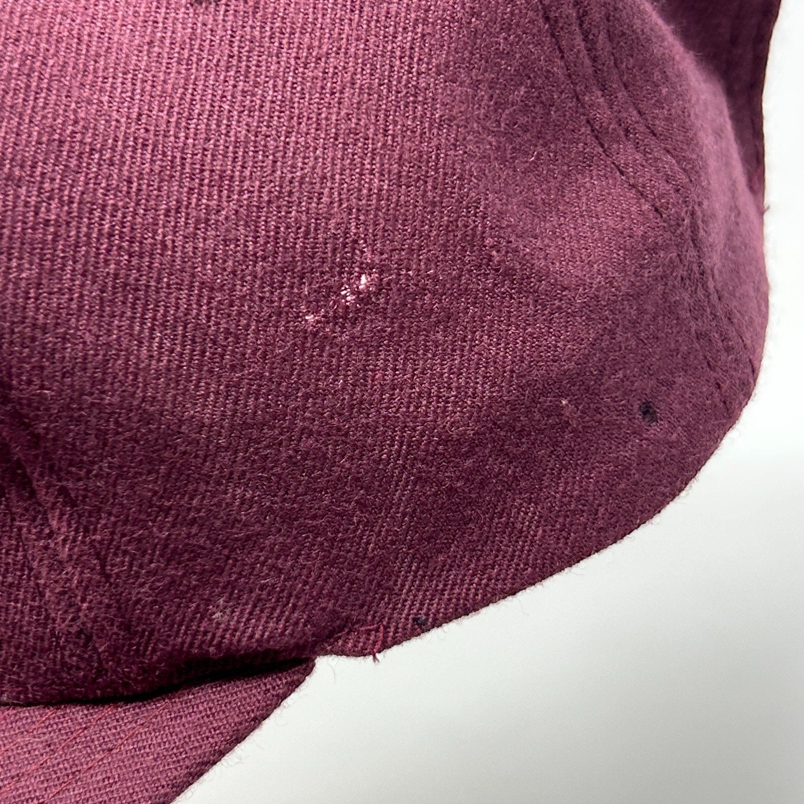 Has moth holes and staining on the sweatband. No other flaws noticed. Has been cleaned and sanitized. See photos.