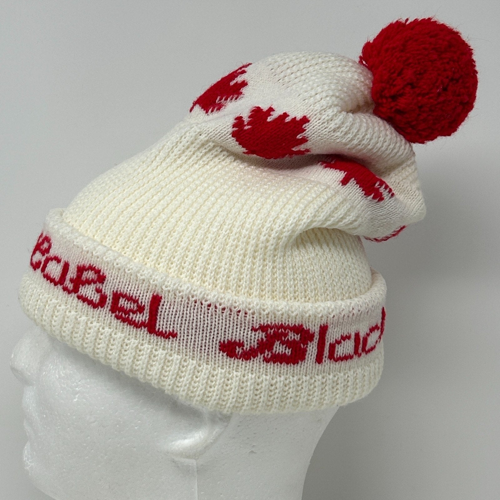 Vintage Carling Black Label Beer Cuffed Pom Pom Beanie Toque Winter Hat Canada Canadian Carling Brewing Company White