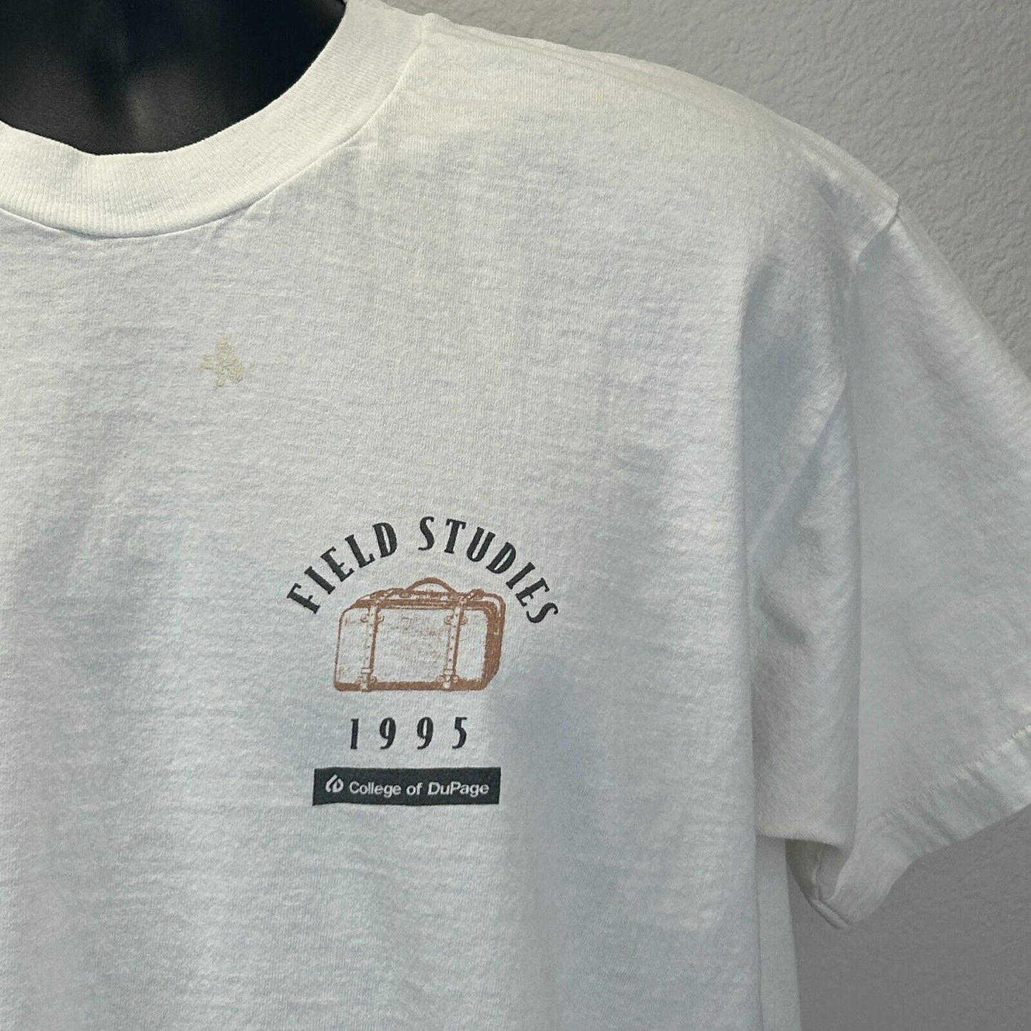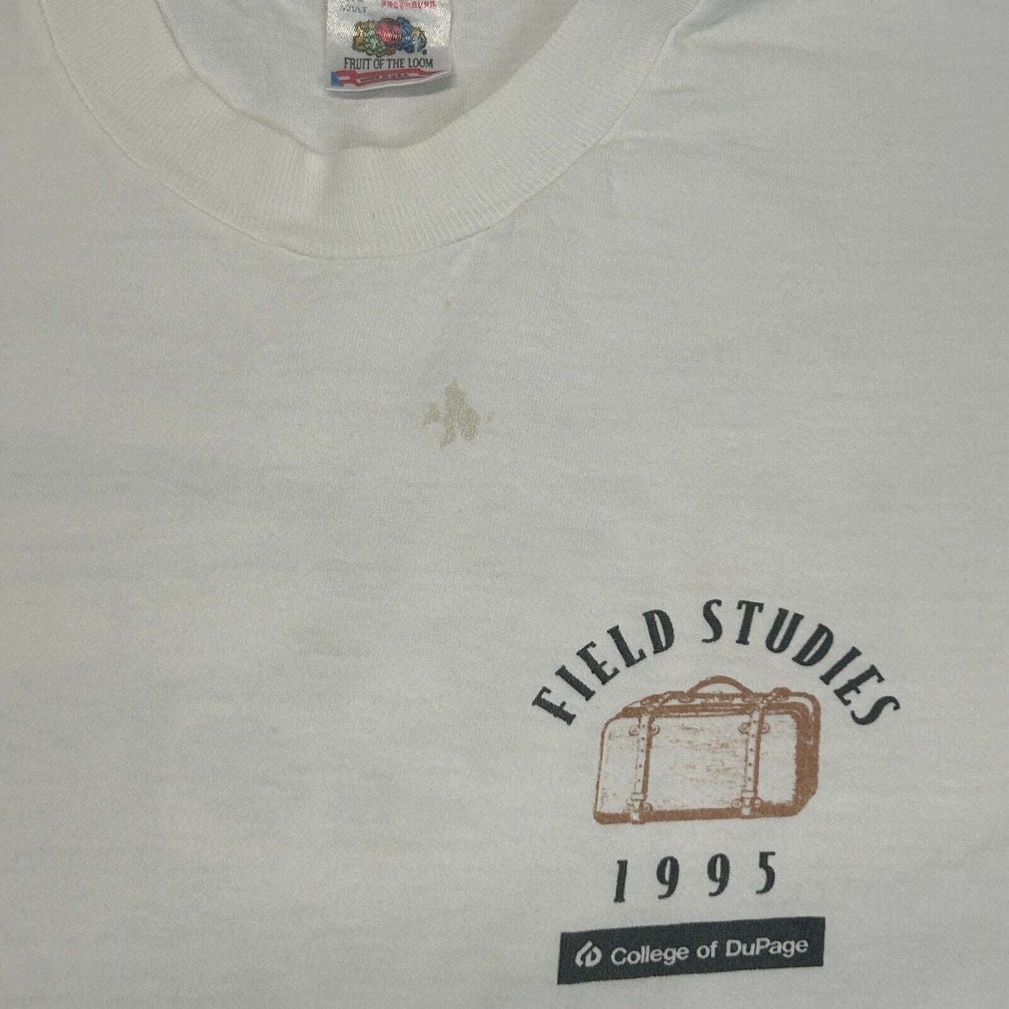 Vintage College of Dupage 1995 Field Studies T Shirt Mens X-Large Glen Ellyn Illinois 90s White Fruit of the Loom Single Stitch Made In USA Graphic Tee