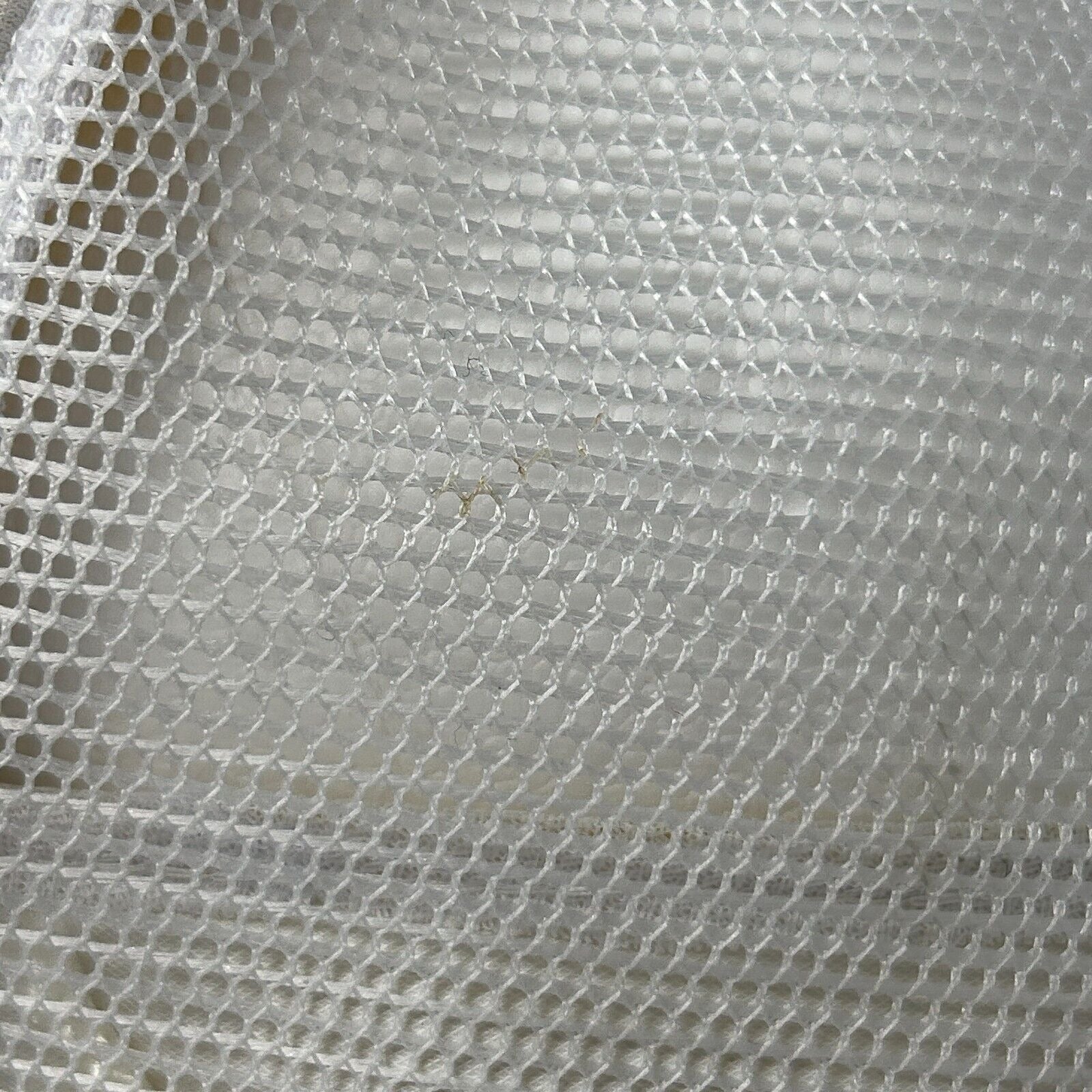 Has a tiny faint spot on the mesh. No other flaws noticed. Has been cleaned and sanitized. See photos.