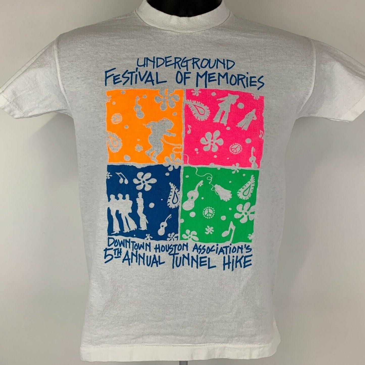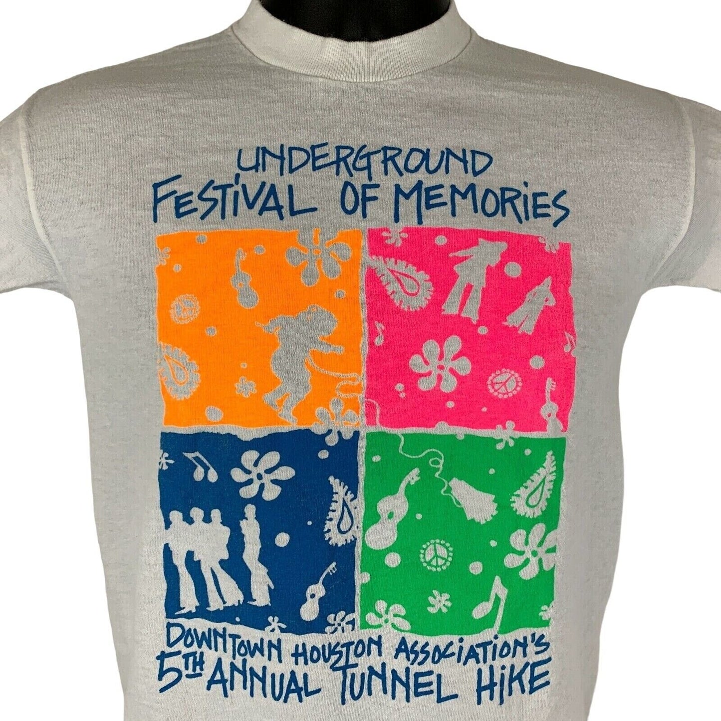Vintage 1980s Houston Tunnel Hike T Shirt Hiking Hiker Texas Underground Festival of Memories Texaco White Single Stitch Graphic Tee