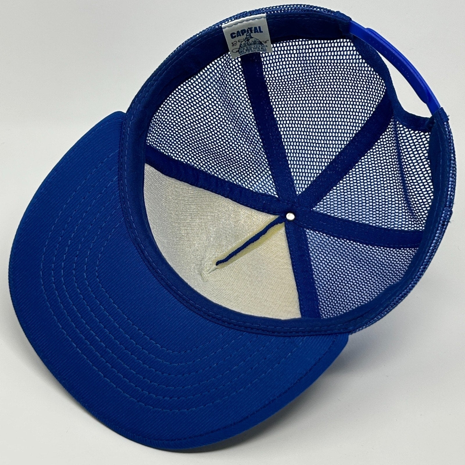 Vintage Jockey Underwear Brand Trucker Hat Baseball Cap Blue 80s Logo Capital Foam Front Mesh Snapback 5 Panel A-Frame