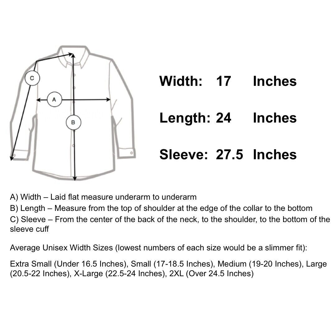 Sleeve Length 27.5" - From the center of the back of the neck to the shoulder to the bottom of the sleeve