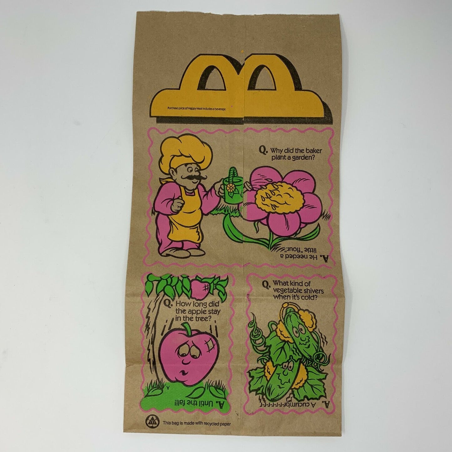 Vintage 1990s 1990 McDonald's Nature's Helpers Happy Meal Bag and Three Gardening Toys (Garden Rake, Double Digger, and Watering Can) Fast Food