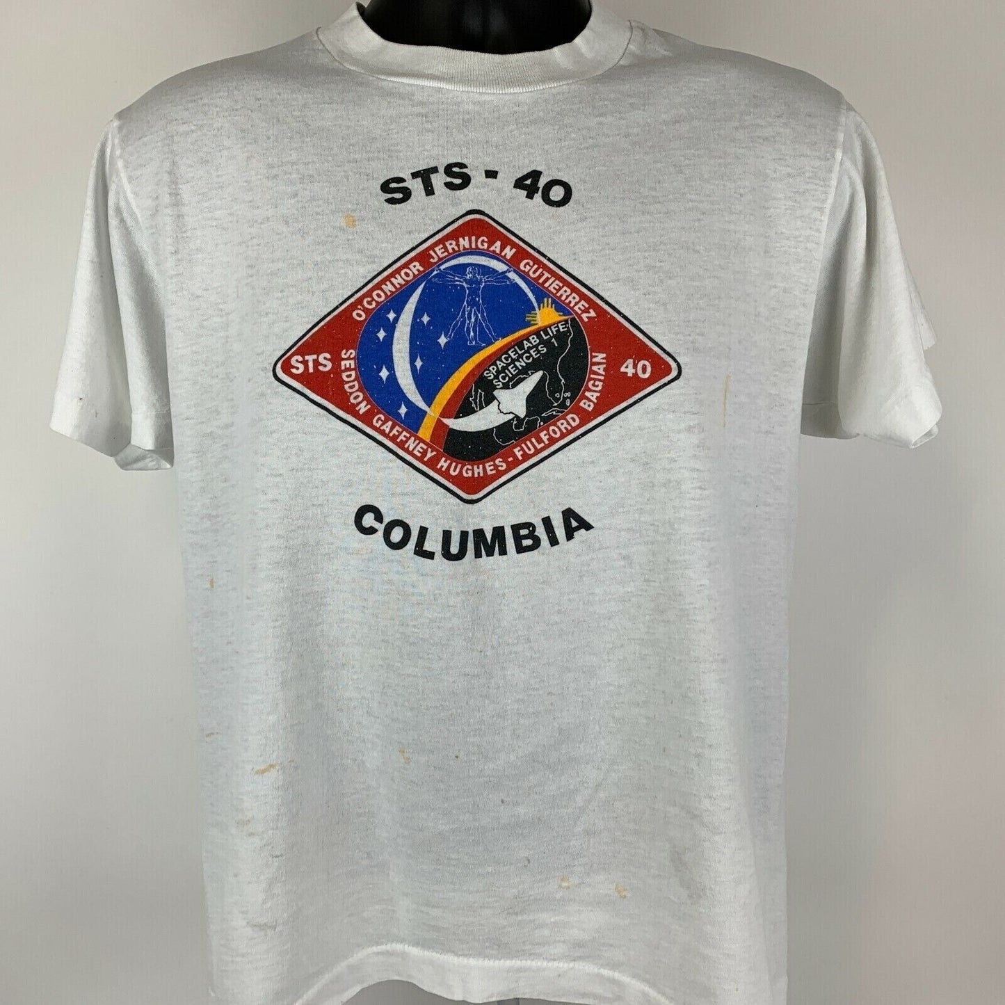 Vintage 1990s 1991 NASA STS-40 Columbia Space Shuttle T Shirt Spacelab Life Sciences 1 Mission White Screen Stars Best Single Stitch Made In USA Graphic Tee