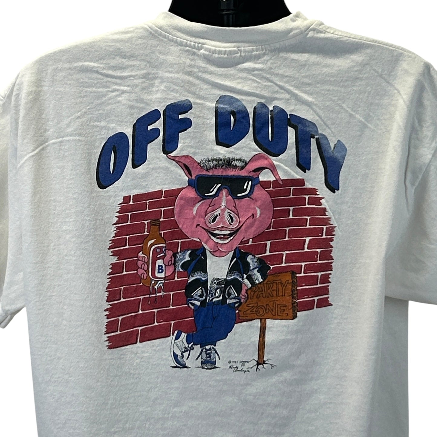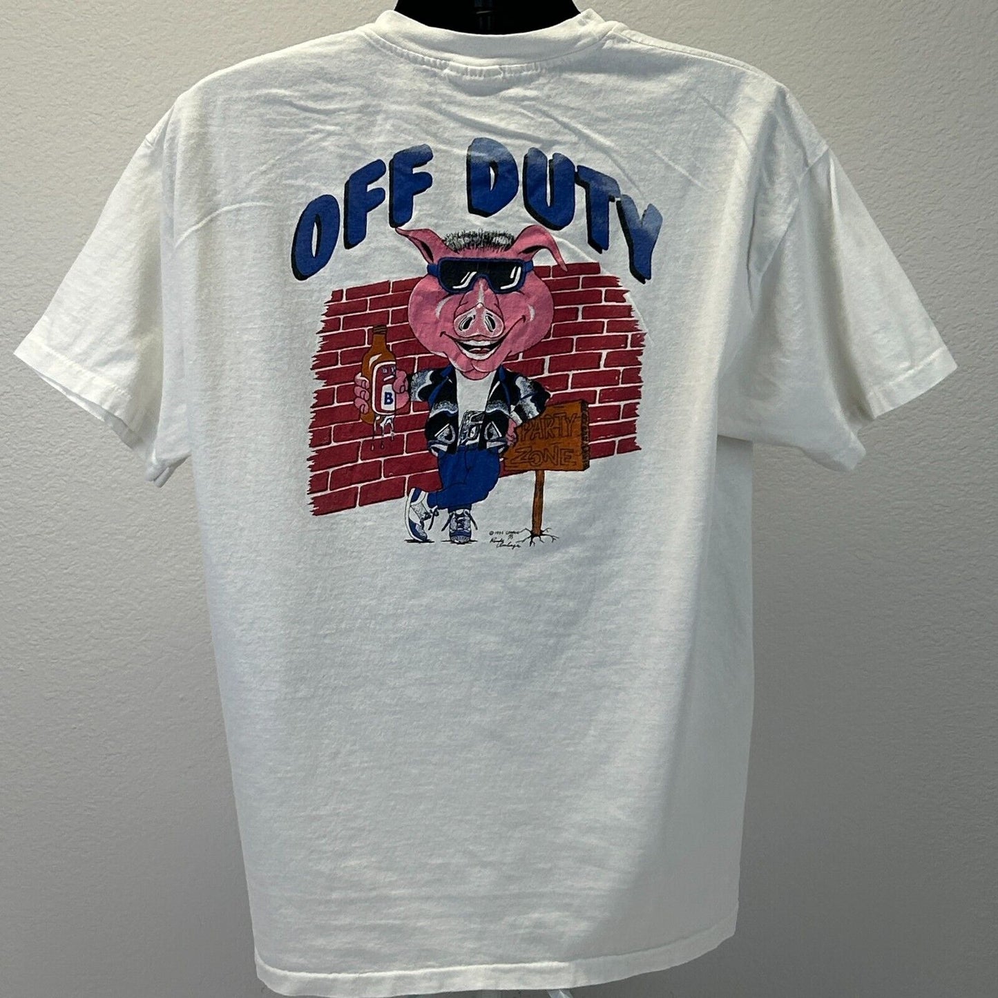 Vintage Off Duty Cop T Shirt Mens XL X-Large Police Officer Pig Undercover Beer Code 3 Productions 90s White Hanes Single Stitch Made In USA Graphic Tee