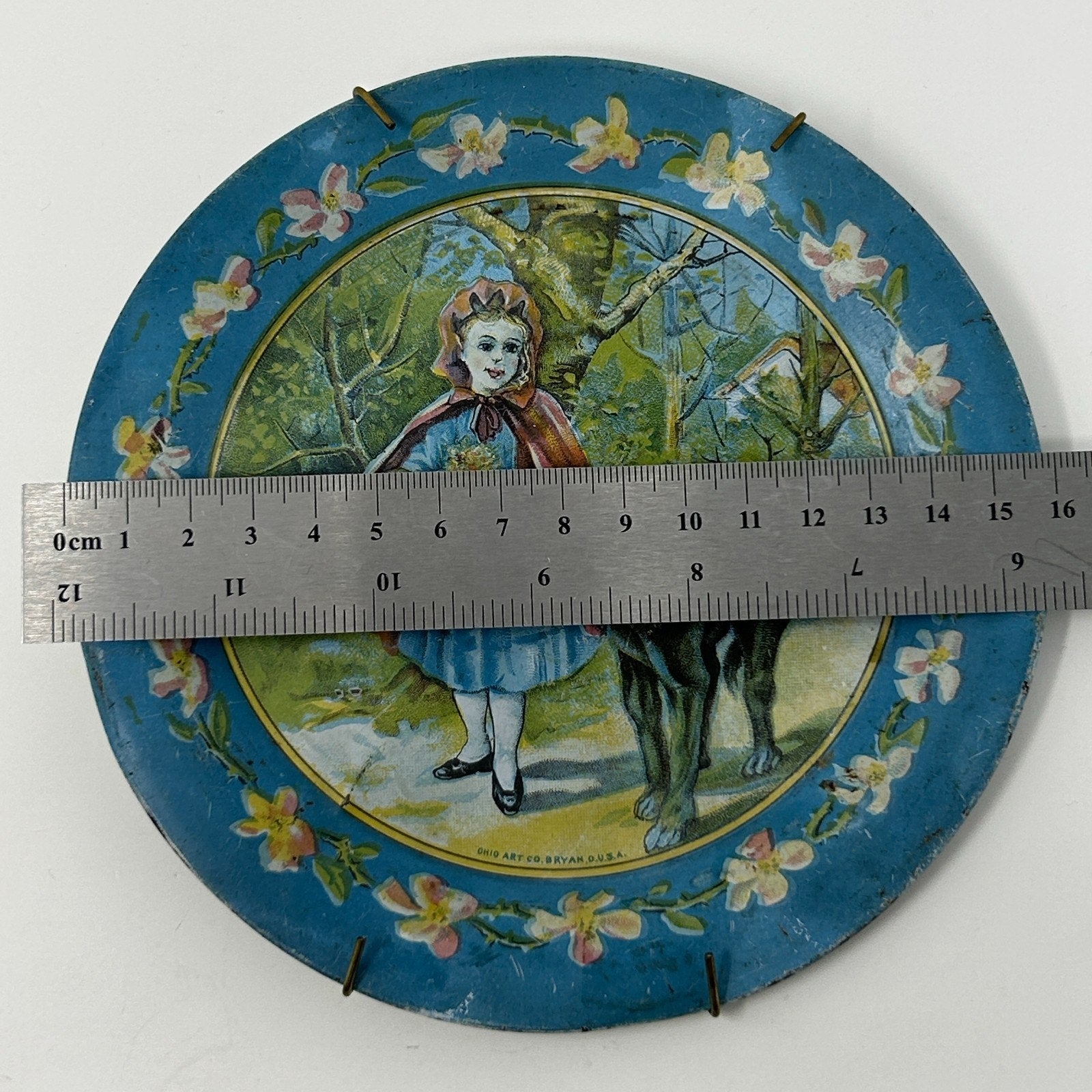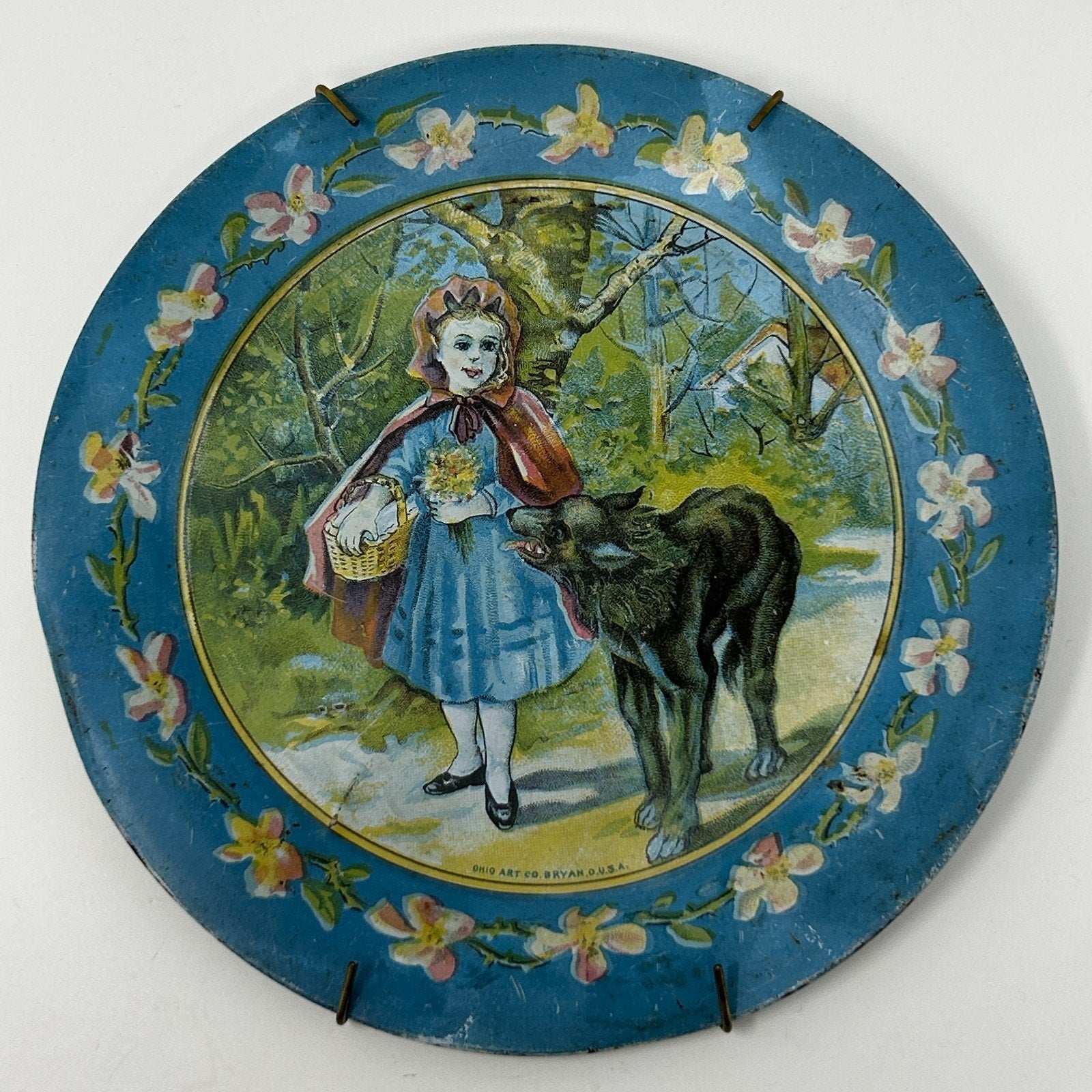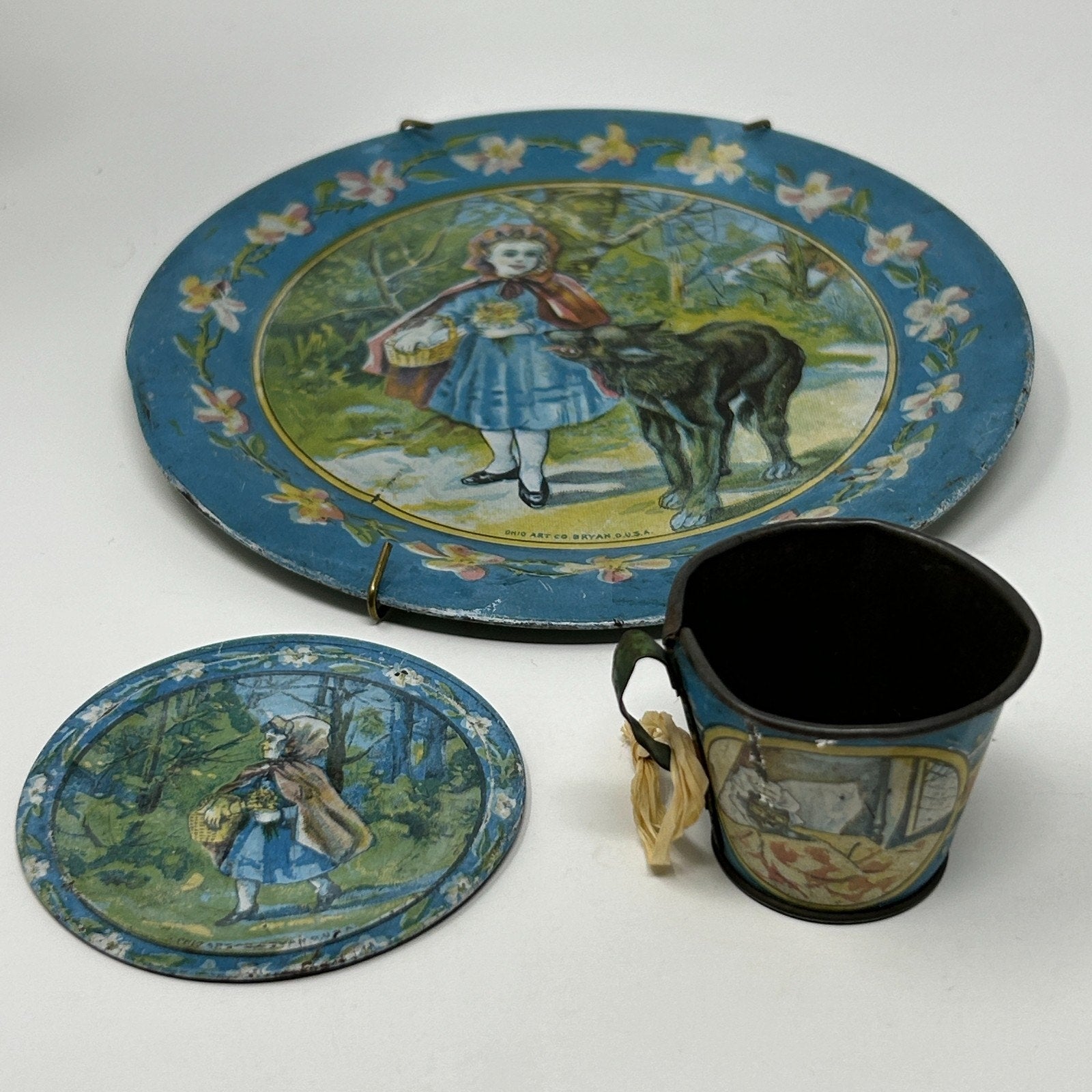 Vintage Ohio Art 1920s Tin Litho Little Red Riding Hood Child's Tea Set 3 Pieces