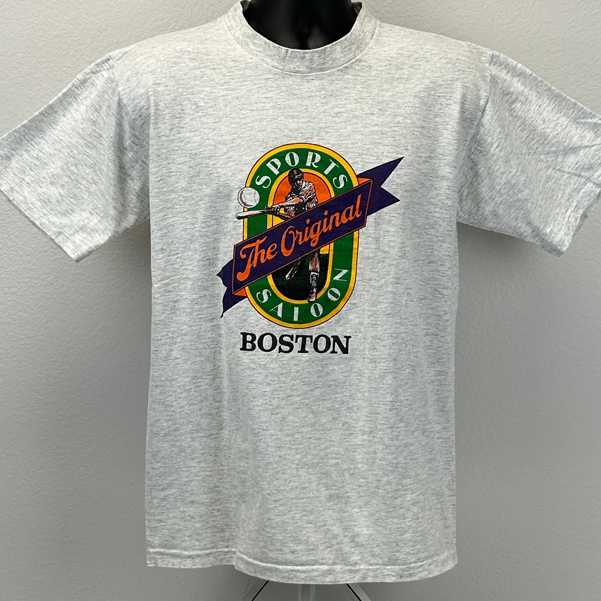 Original Sports Saloon Boston T Shirt Mens L Large Gray Vintage 90s Baseball USA
