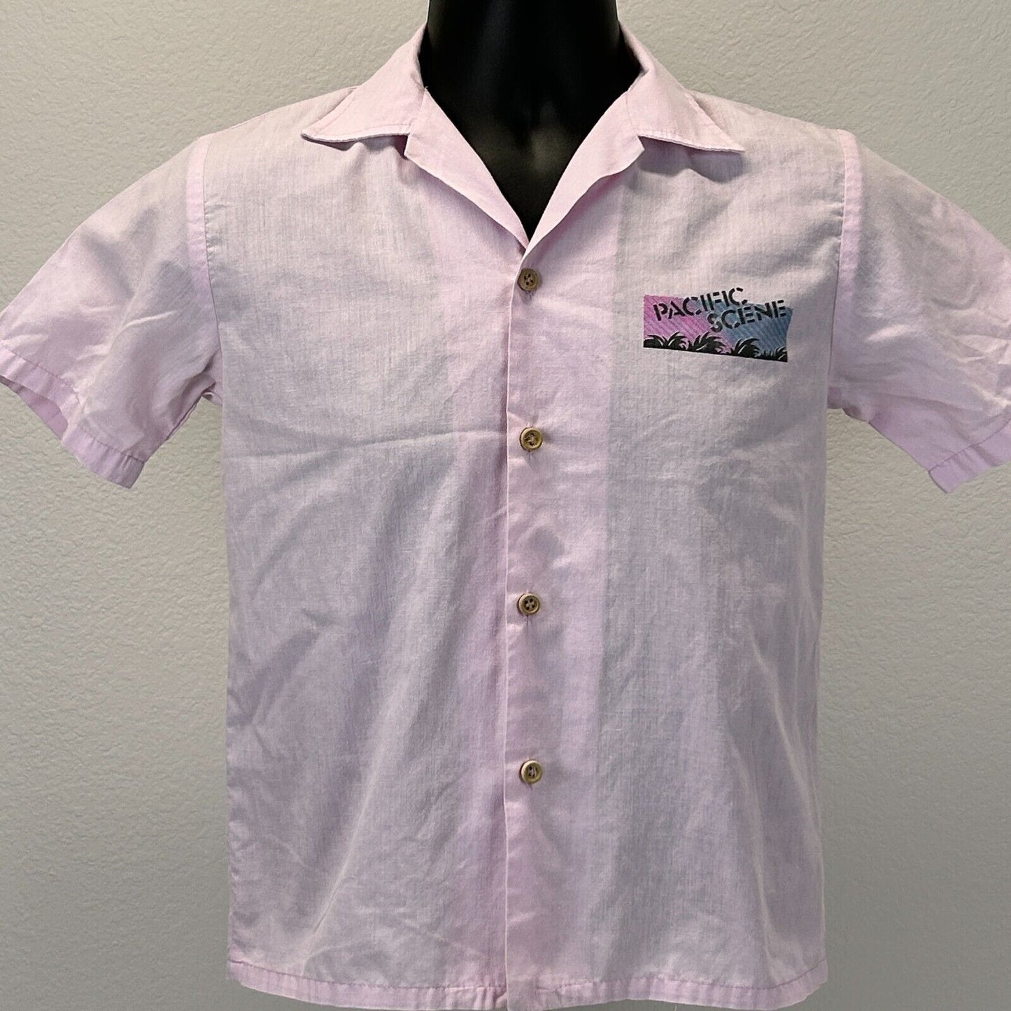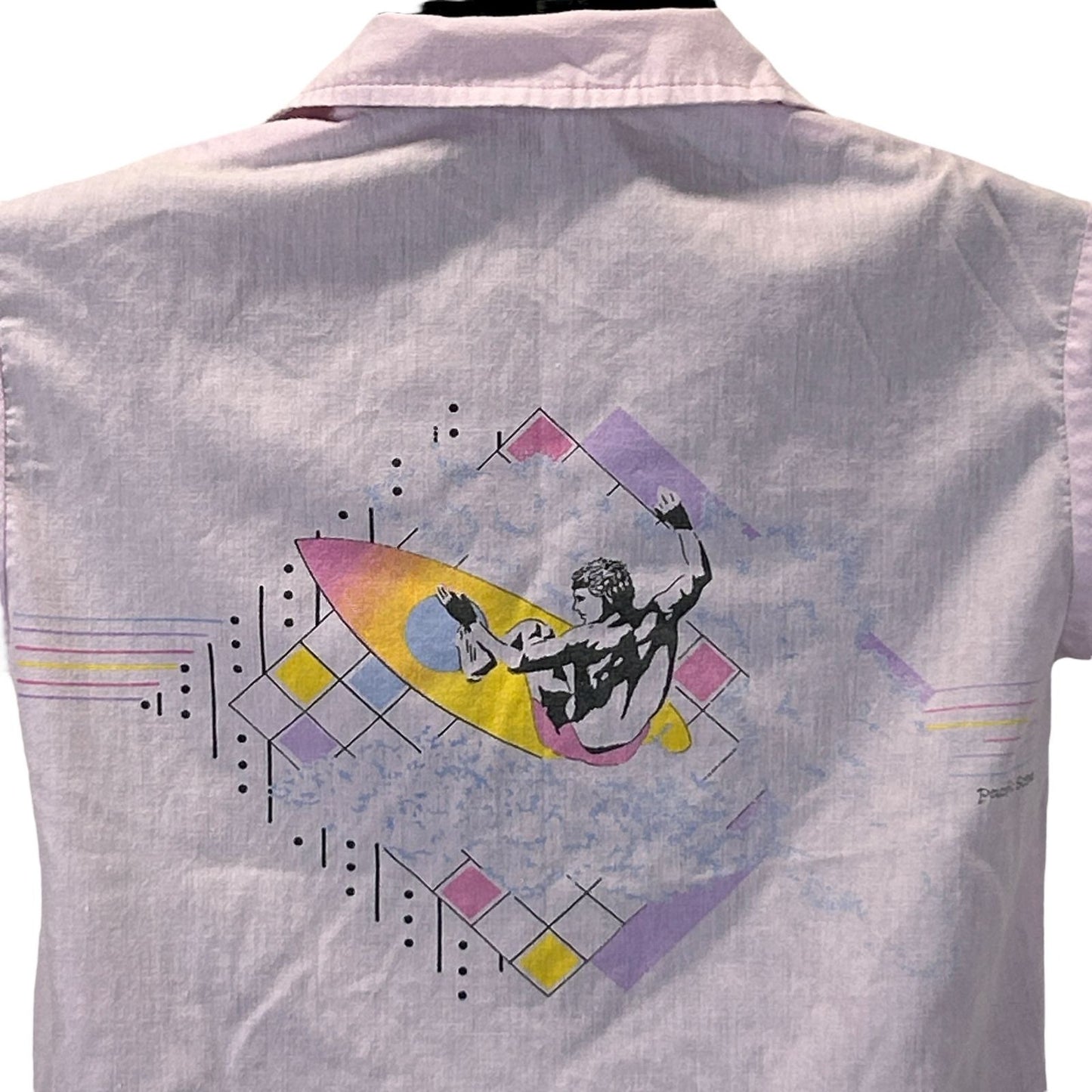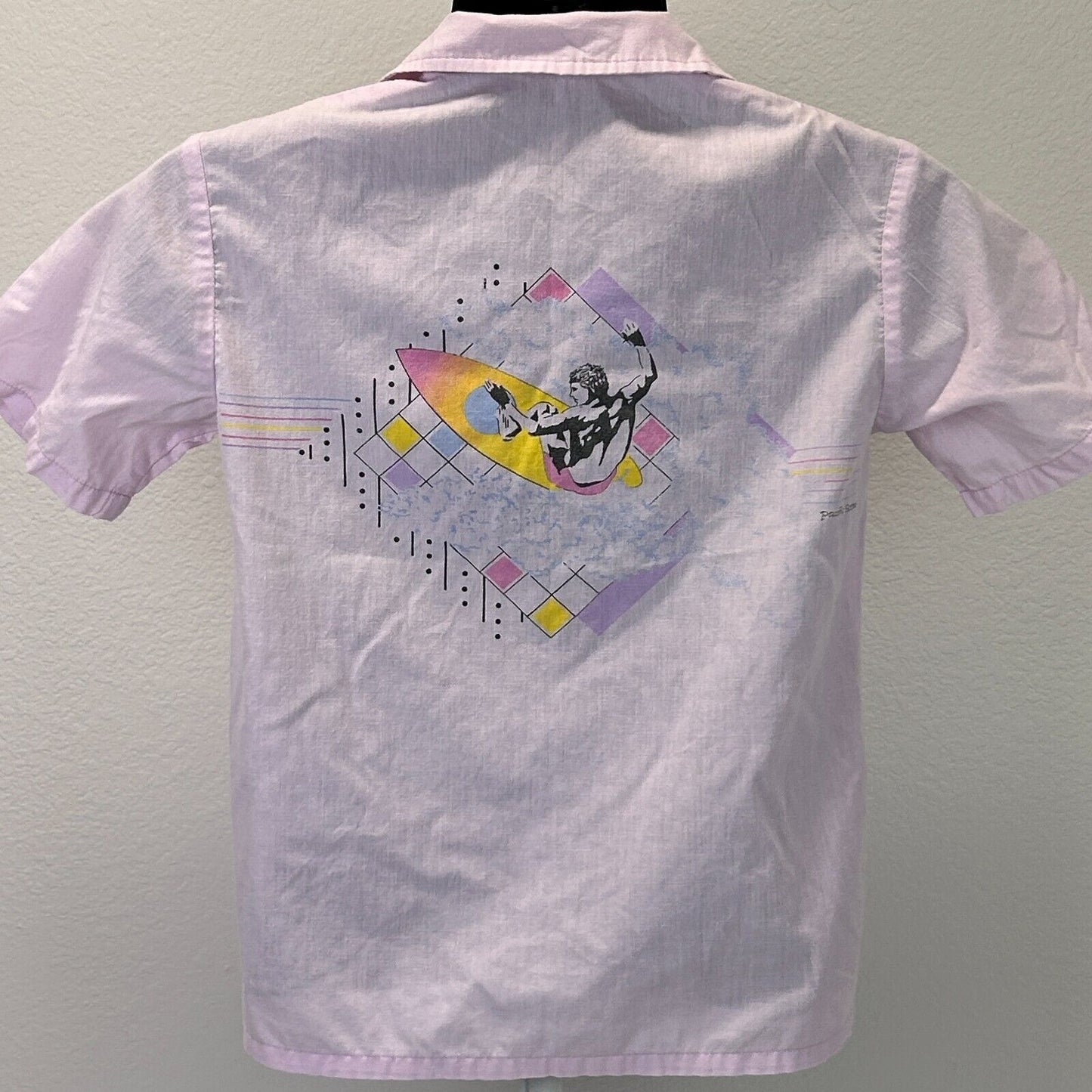 Vintage Pacific Scene Surfing Button Front Shirt Youth Medium Surfer Surfboarding Surfboarder 80s Purple