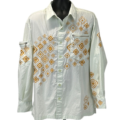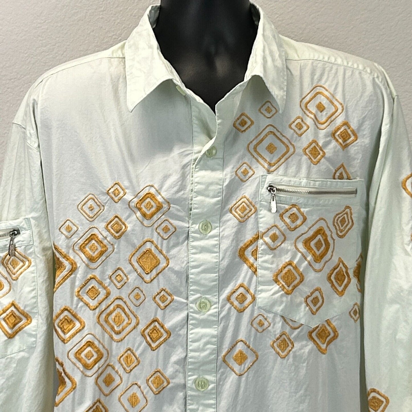Vintage Royal Prestige Button Front Shirt Mens 2XL 90s Embroidered Pockets Green