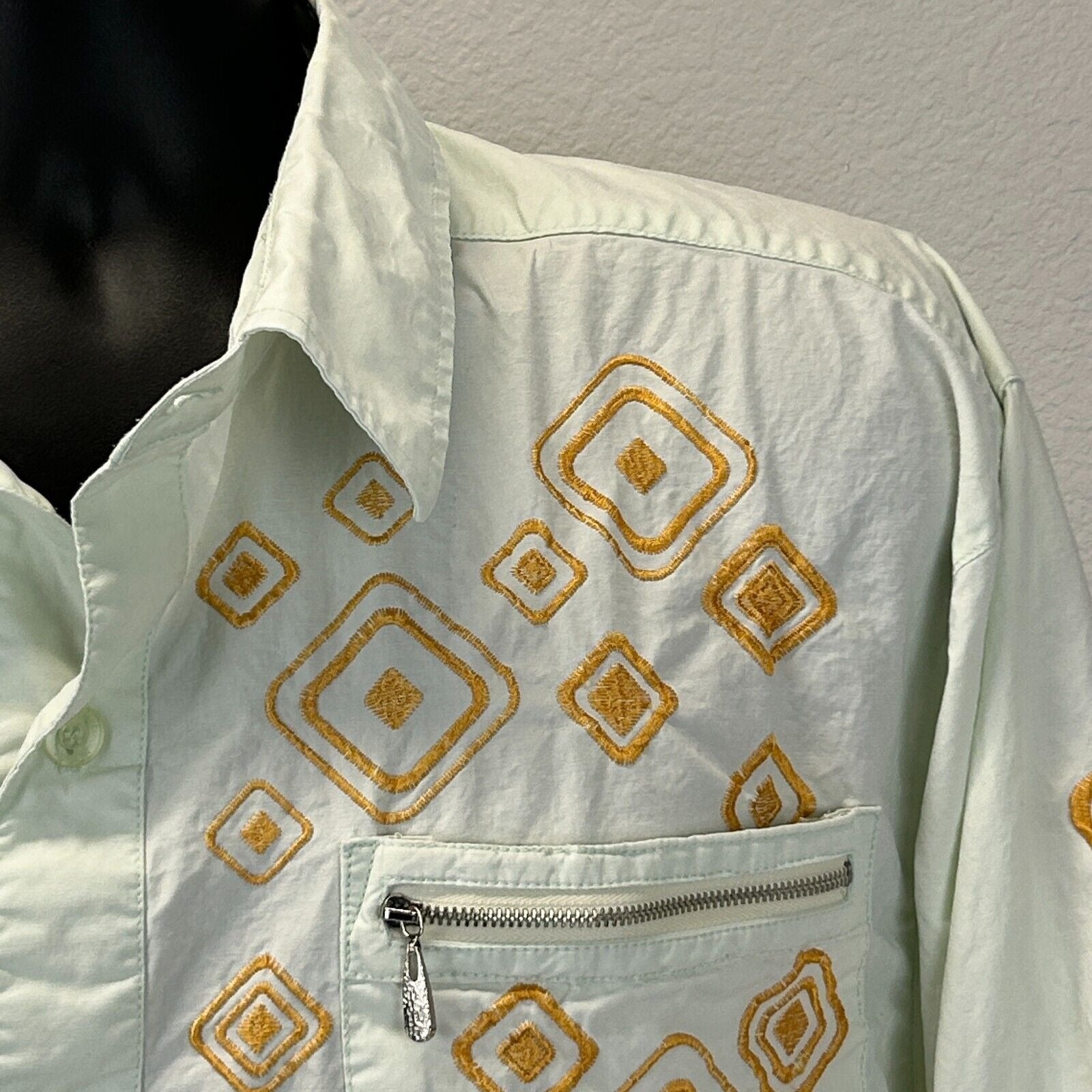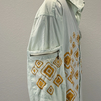 Vintage Royal Prestige Button Front Shirt Mens 2XL 90s Embroidered Pockets Green Button Up Button Down