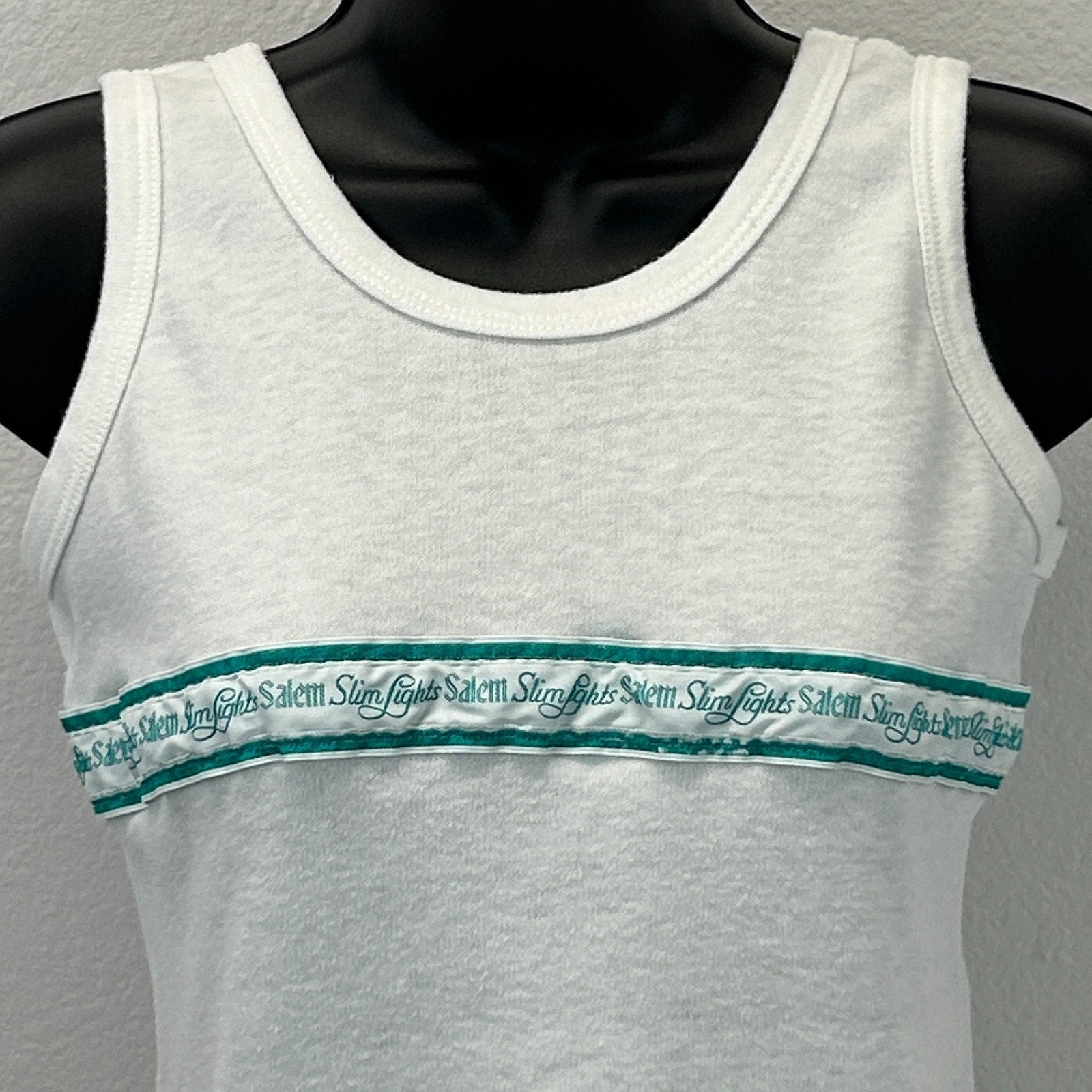 Vintage Salem Slim Lights Tank Top Womens XXS 2XS White 70s 80s Cigarettes Shirt