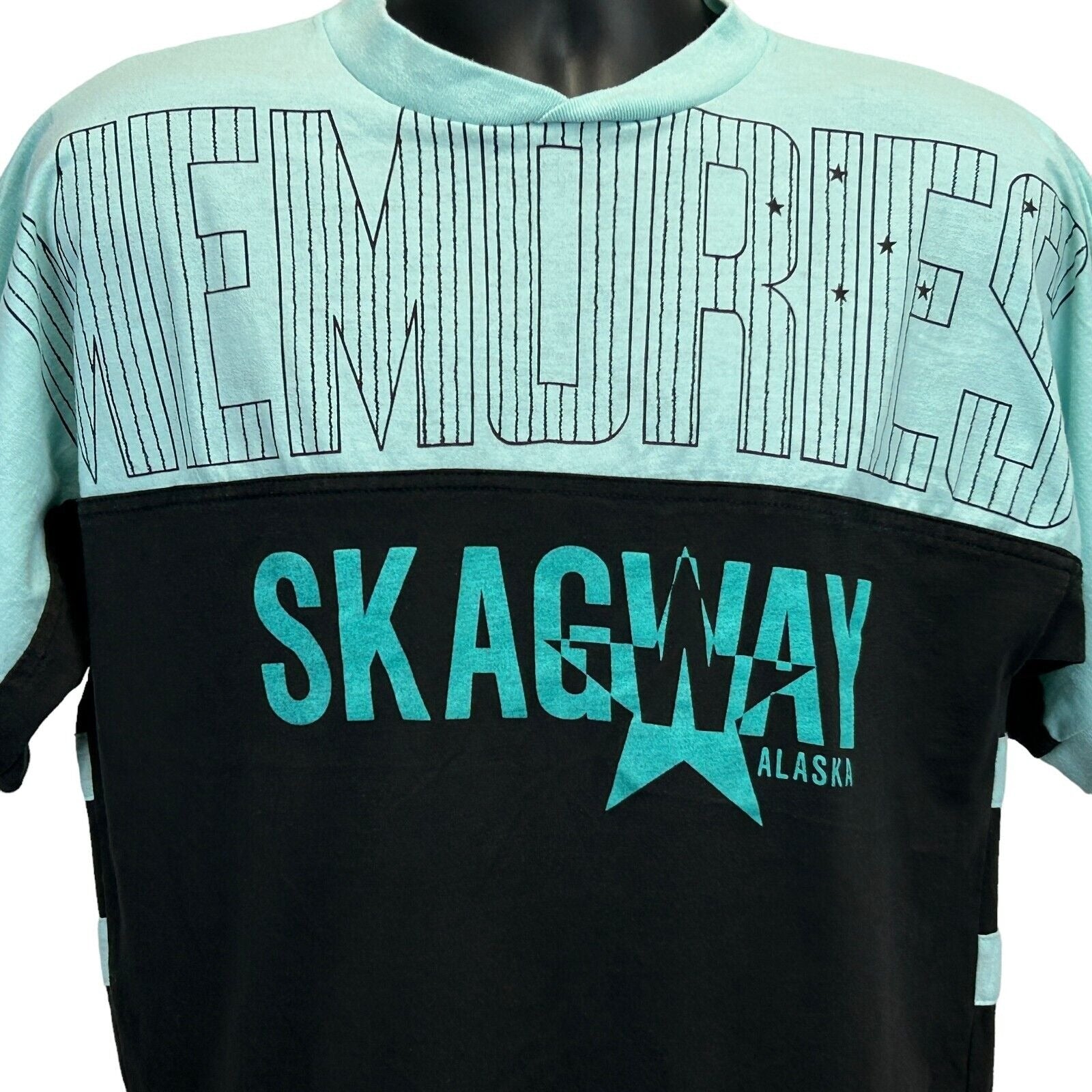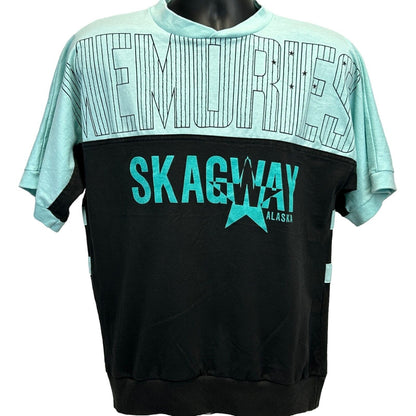 Skagway Alaska Memories T Shirt Medium Vintage 80s Mens Blue Textile Prints Made In USA Graphic Tee