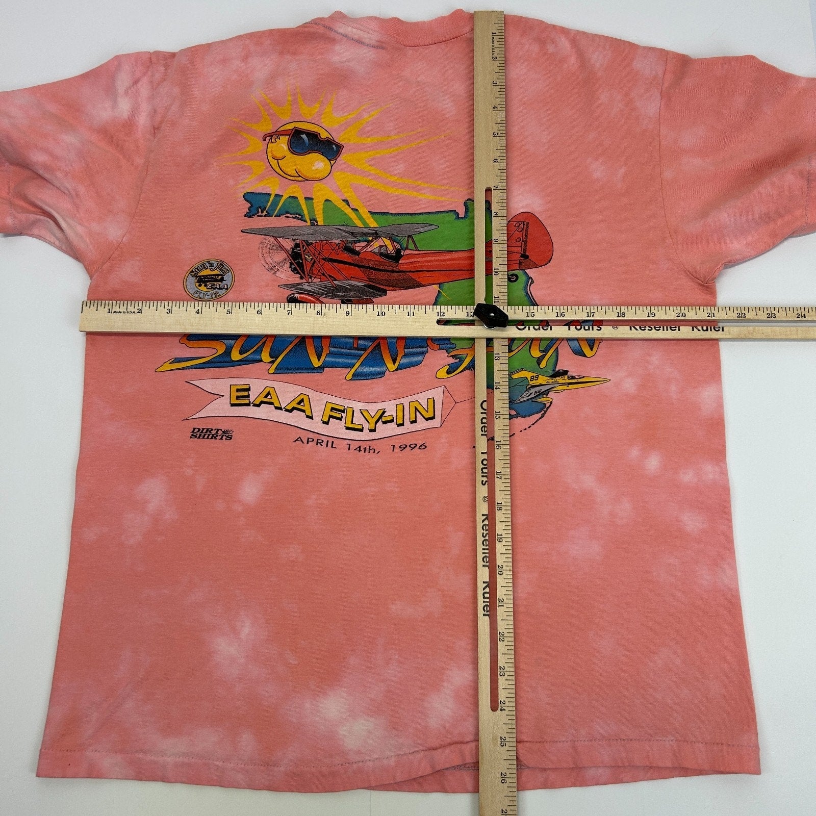 Vintage 1996 Sun n Fun EAA Fly In T Shirt Mens L Large Orange 90s Lakeland Florida Aviation Airplane Plane Biplane Experimental Aircraft Association Single Stitch Graphic Pocket Tee